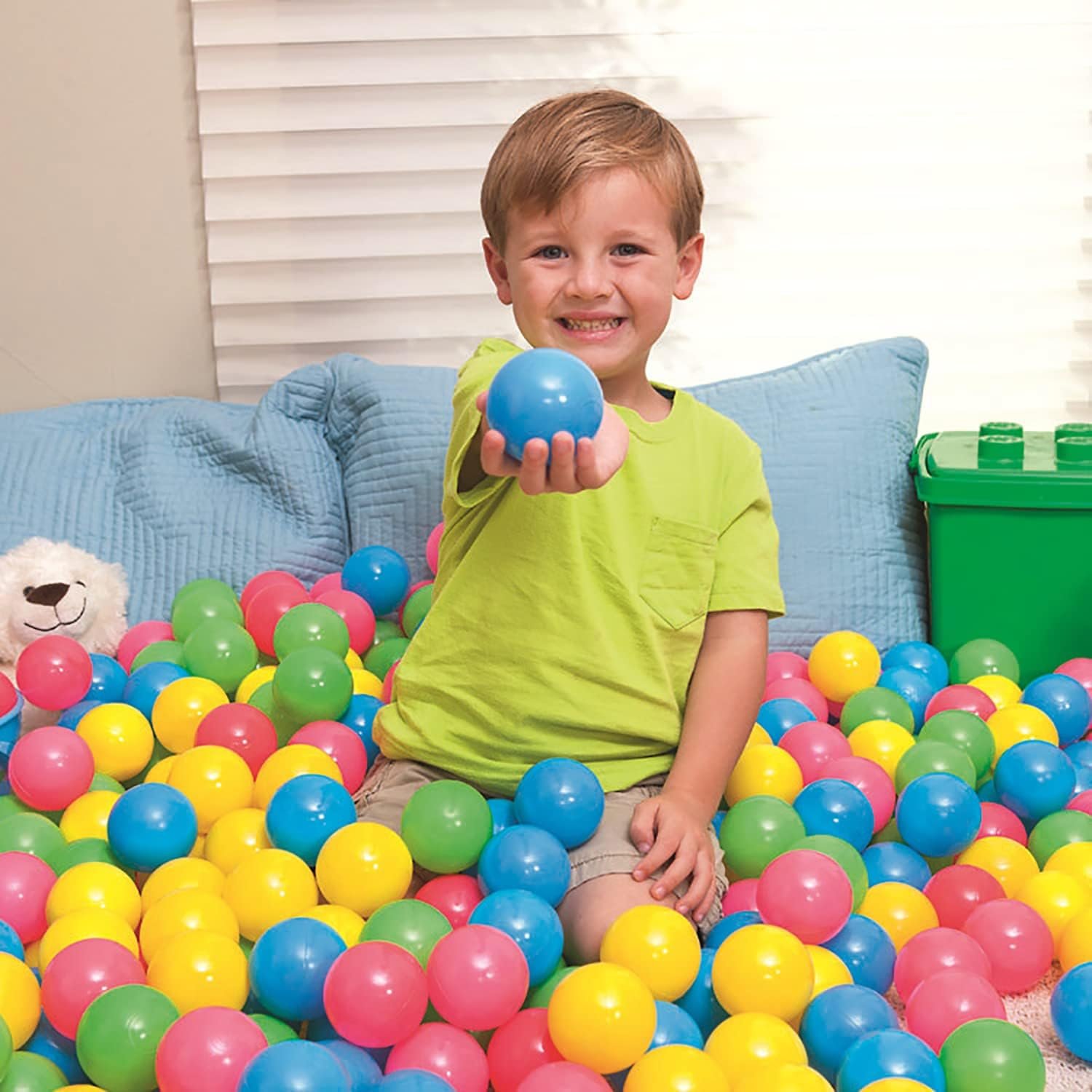 These crush-proof, non-toxic plastic balls are BPA, phthalate, and lead-free, designed to withstand ~100lbs while remaining soft for children. The vibrant 1000-piece set offers hours of safe, active play for toddlers, promoting motor skills and hand-eye coordination. Ideal for ball pits, tents, playhouses, kiddie pools, and bounce houses, they come with a durable mesh storage bag for easy re-storage.