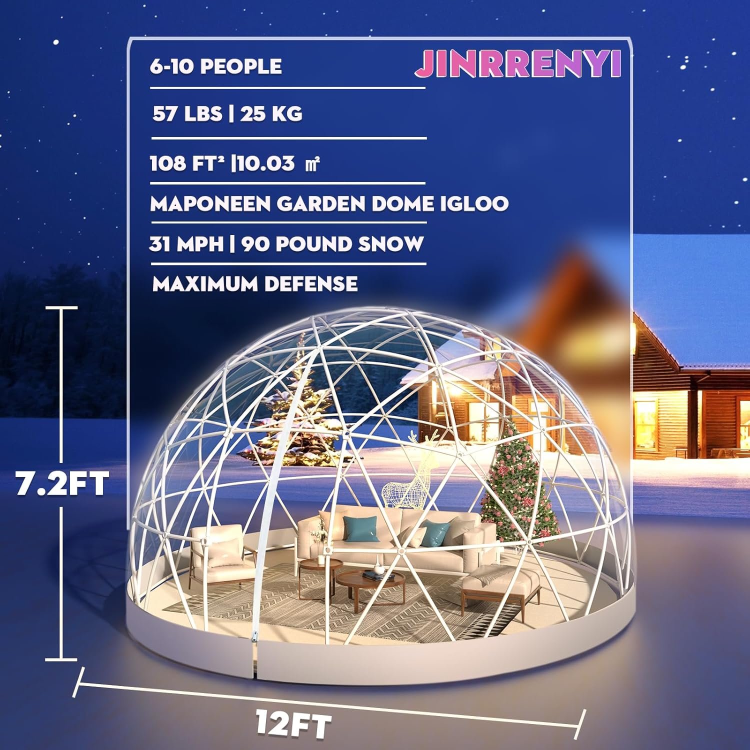 The Garden Dome Igloo features a spacious 12-foot diameter, making it ideal for various outdoor activities like gardening or dining. Its advanced geodesic dome design ensures stability against strong winds. The transparent PVC cover allows natural sunlight while protecting against UV rays. Weatherproof and suitable for all seasons, it provides reliable shelter year-round, from summer gatherings to winter greenhouses. The elegant white frame enhances aesthetic appeal, combining modern design with durability to resist corrosion and wear, making it a stylish addition to any outdoor space.