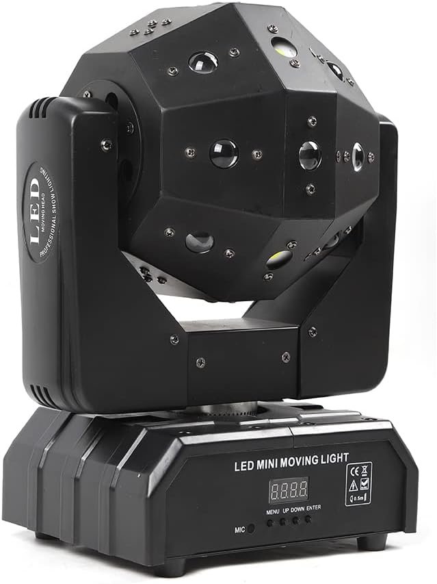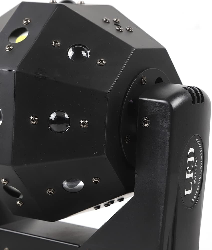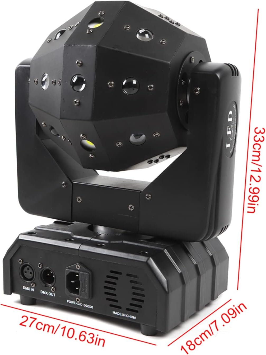 The stage light features dual hanging brackets for secure installation and anti-slip mats for stability. Suitable for various events, it covers an area of 538.1 ft². Constructed from durable plastic and metal, it offers dazzling effects with 16 RGBW LEDs and multiple control modes (DMX512, voice, master-slave). Its compact design (10.63×7.09×12.99 in) allows easy placement and storage. Safety features include overheating protection and a built-in fan. The product promotes user-friendly operation with a digital display, making it ideal for parties, celebrations, and performances. Package includes the light, power cable, brackets, and screws.