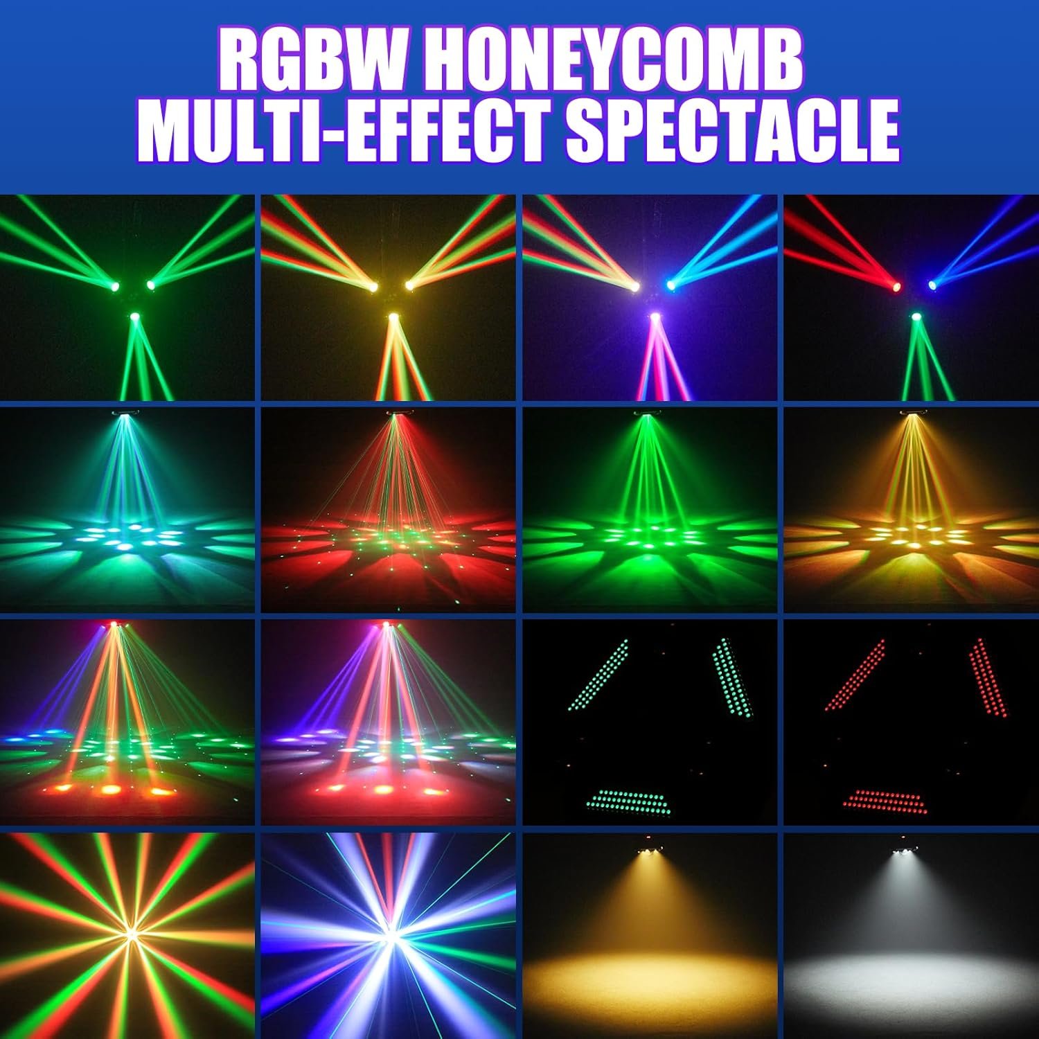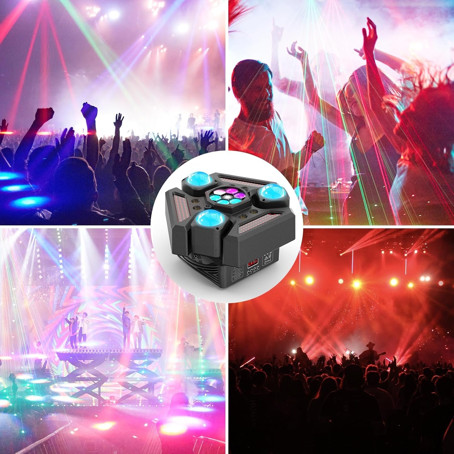 Experience dynamic lighting with 9 independent heads projecting 9 intense beams using RGBW LEDs. Control effortlessly through sound activation or DMX512. Built for durability and optimal heat handling, this gear is perfect for DJ sets, clubs, and home parties.