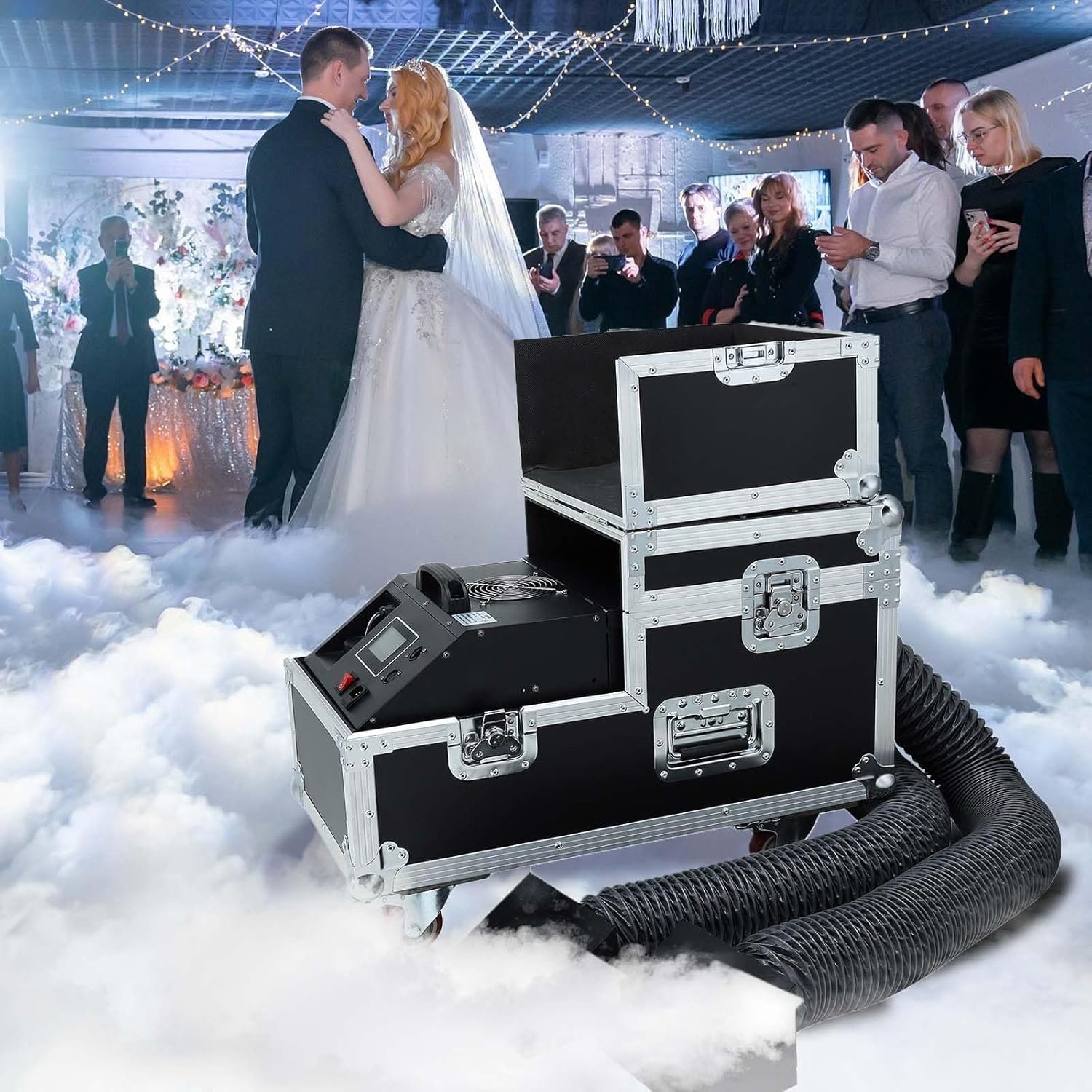 The product is a powerful 2000W low-lying fog machine designed for events like weddings and theater shows, creating thick fog in 180 seconds for areas up to 70m². It features dual control modes (DMX and remote), a durable wheeled flight case for portability, and double hoses for better coverage. The design minimizes consumables, eliminating the need for dry ice and using low-consumption fog fluid (not included). Customer reviews average 3.2 stars, with prices ranging from $239.88 to $699.99 depending on specifications such as power, control mode, and spray height.