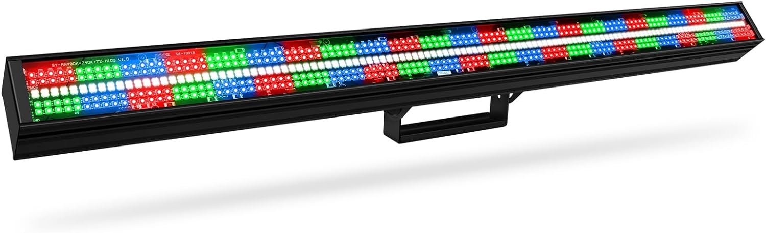 The OPPSK 720LEDs DJ Light Bar is a versatile 200W lighting fixture designed for various events like concerts and parties. It features 240 cool white SMD LEDs and 480 RGB LEDs, allowing for colorful strobe and wash lighting effects. The unit can be controlled via DMX with three modes and programmable macros for ease of use. Additionally, it includes a user-friendly LCD menu for configuration and comes with adjustable brackets for mounting. With dimensions of 40.5 x 6.7 x 5.1 inches and weighing 7.4 pounds, it’s suitable for touring and large productions.