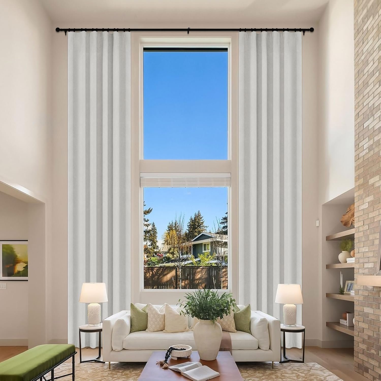 216 Inches Long Full Blackout Chenille Curtains, Flat Hooks – Extra Long Drapes for High Ceiling – Thermal Insulated Drapery – Loft Draperies 100% Light Block, White, 52″ Wx216 L, 2 PCS