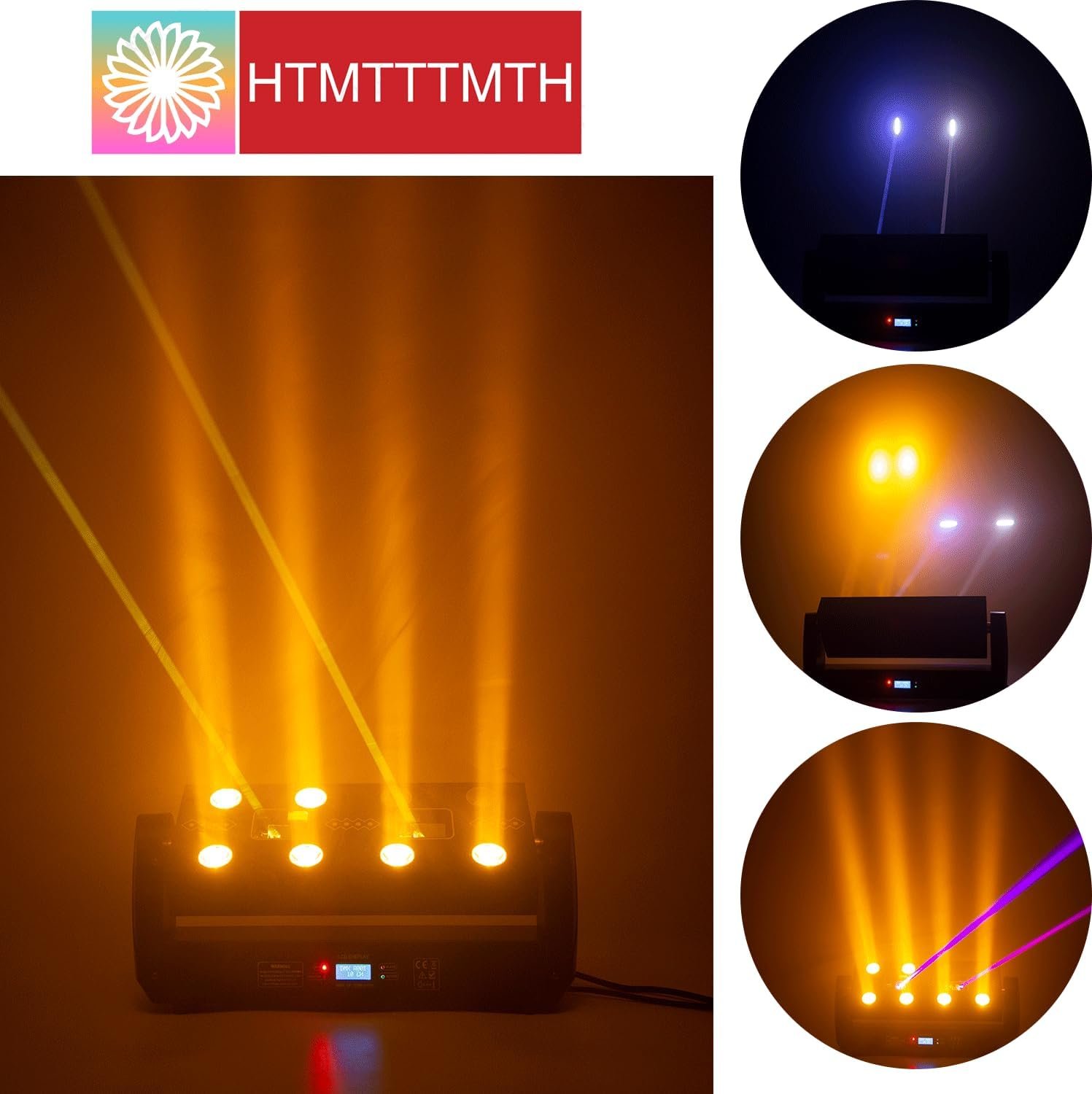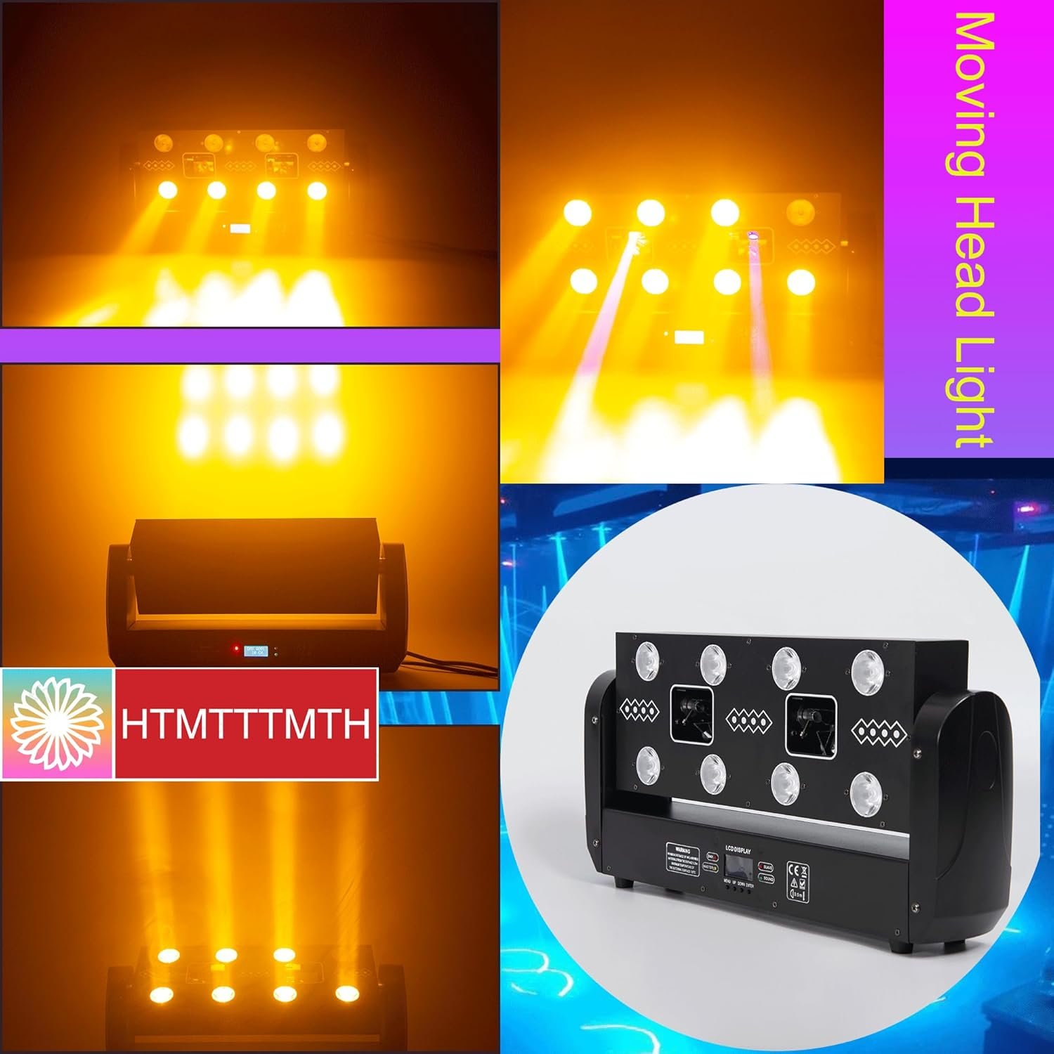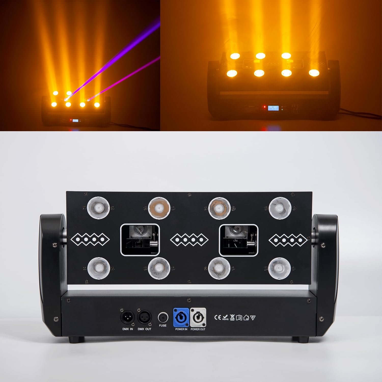 The product is an RGBW full-color beam stage light designed for various occasions like parties, weddings, and stage performances. It features 8 orange beams, high-quality brightness, and clear patterns. Control options include DMX512, master/slave modes, and sound activation, allowing for dynamic lighting effects that sync with music. The light is portable, easy to install, and requires smoke for optimal visual effects. It has received positive customer reviews, averaging 4.6 out of 5 stars across multiple ratings, with prices ranging from $178.99 to $342.99.