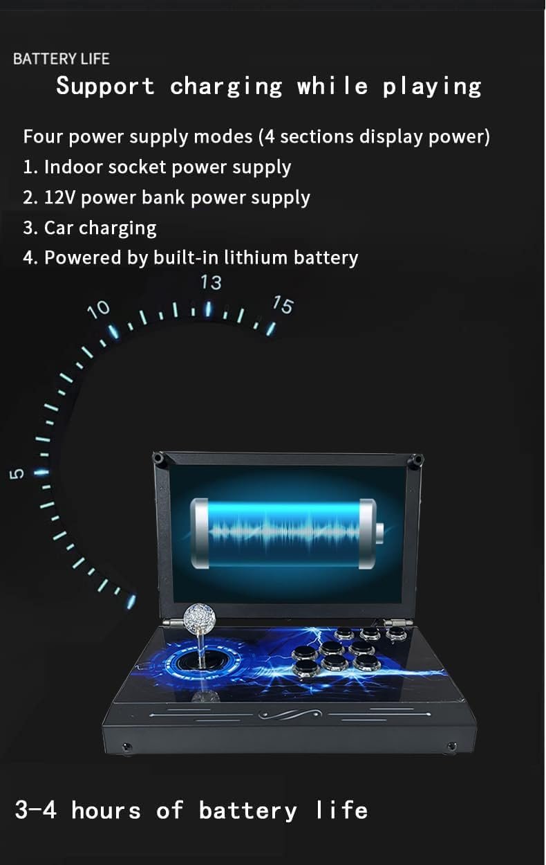 The 14-inch HD game console features a built-in library of 30,000 games, an S812 processor, and supports PSP1 and DC emulators. Its portable all-metal design folds into a suitcase and includes a 3-hour rechargeable battery, making it ideal for travel. With the Pandora’s Box 80S system, it offers high-definition graphics and enhanced performance. Multiplayer capabilities allow for two players, or up to four with additional controllers. The console includes customizable features like a clear protective film for aesthetic appeal and a 360-degree joystick with multi-color backlighting for an immersive gaming experience.