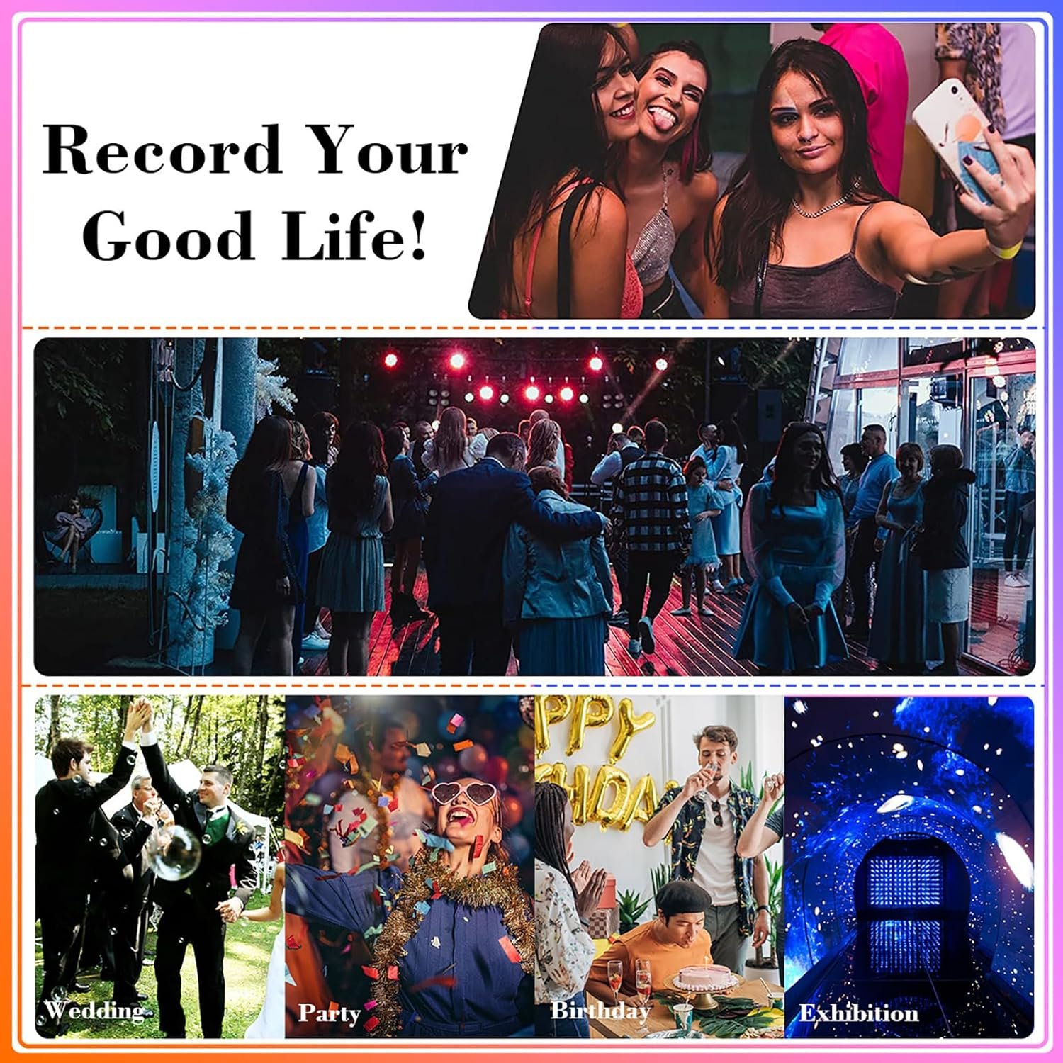 Experience seamless 360° panoramic shooting with adjustable fill lights and an expansive 30024090cm space, accommodating up to 12 people. The selfie stick features 8-speed adjustments for all your shooting needs, perfect for events and live broadcasts.