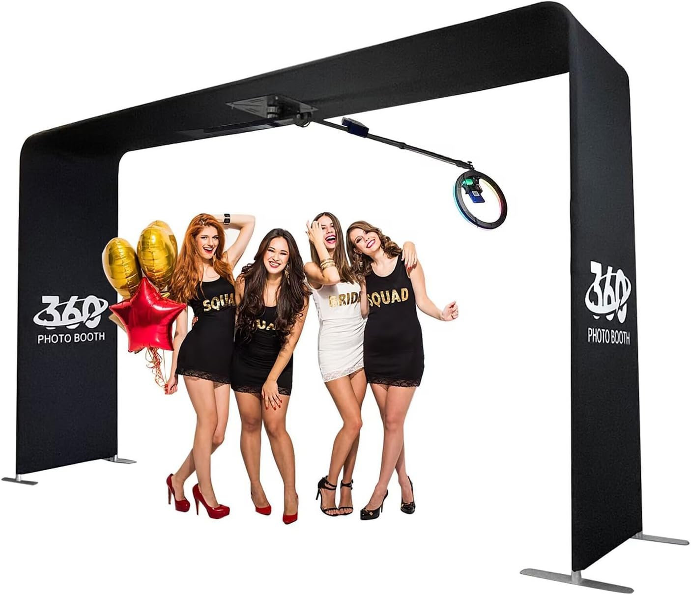 This 360° panoramic photo booth features an AR halo fill light with three adjustable shades and a 180° adjustable angle. It supports loop rotation, fixed-point shooting, and 8-speed adjustments for various shooting needs. The selfie stick has tilt and height adjustments, extending from 1.2M to 2.3M. With dimensions of 30024090cm, it can accommodate up to 12 people, perfect for events like weddings and parties. The system operates smoothly on a slide rail with a strong load-bearing capacity. Note: Import duties are not included; buyers are responsible for any customs taxes.