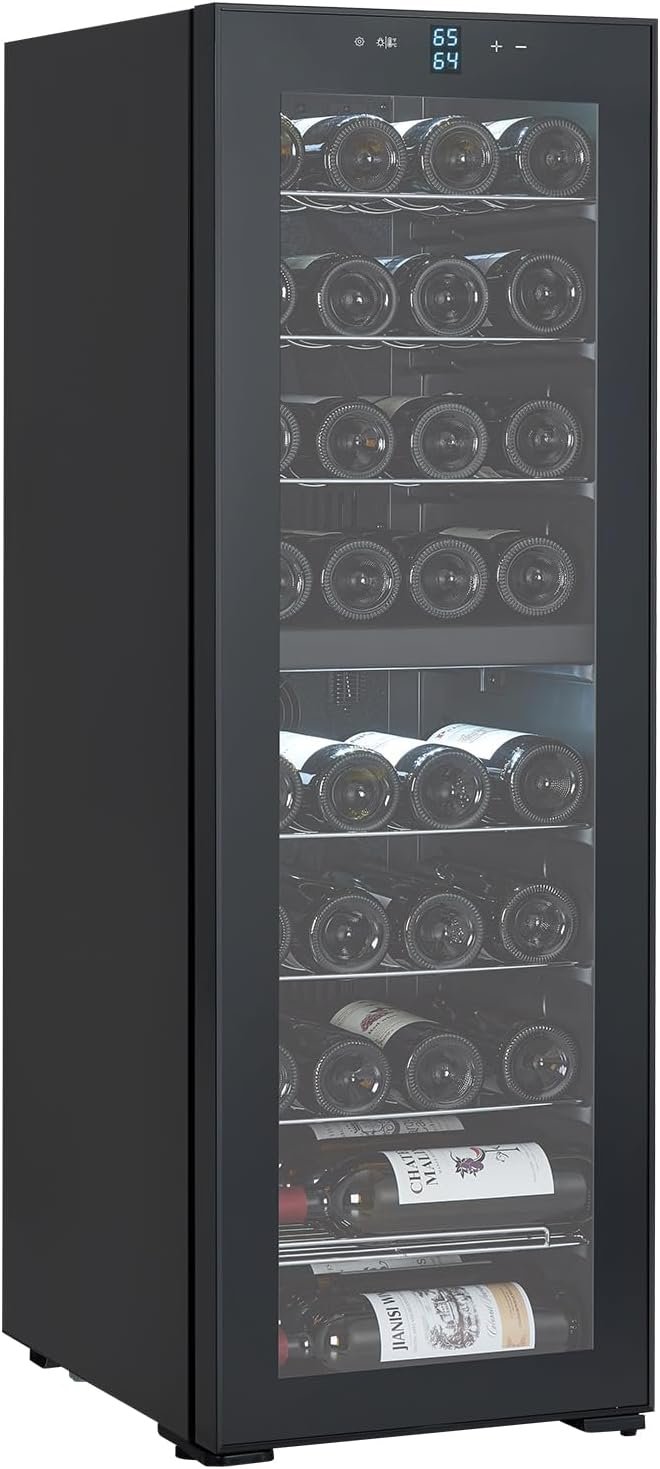 Upgrade your space with a precision wine cooler that offers quiet performance and flexible storage. Its advanced compressor cooling maintains temperatures between 41–64°F, ideal for various beverages. The ultra-quiet operation minimizes vibration to protect your collection while accommodating up to 39 bottles with adjustable shelving. A double-tempered glass door ensures clarity and insulation, promoting energy efficiency. Its modern design, with soft blue LED lighting, fits seamlessly into kitchens, bars, and living areas, while leveling feet provide stability on uneven floors, enhancing your entertaining experience.