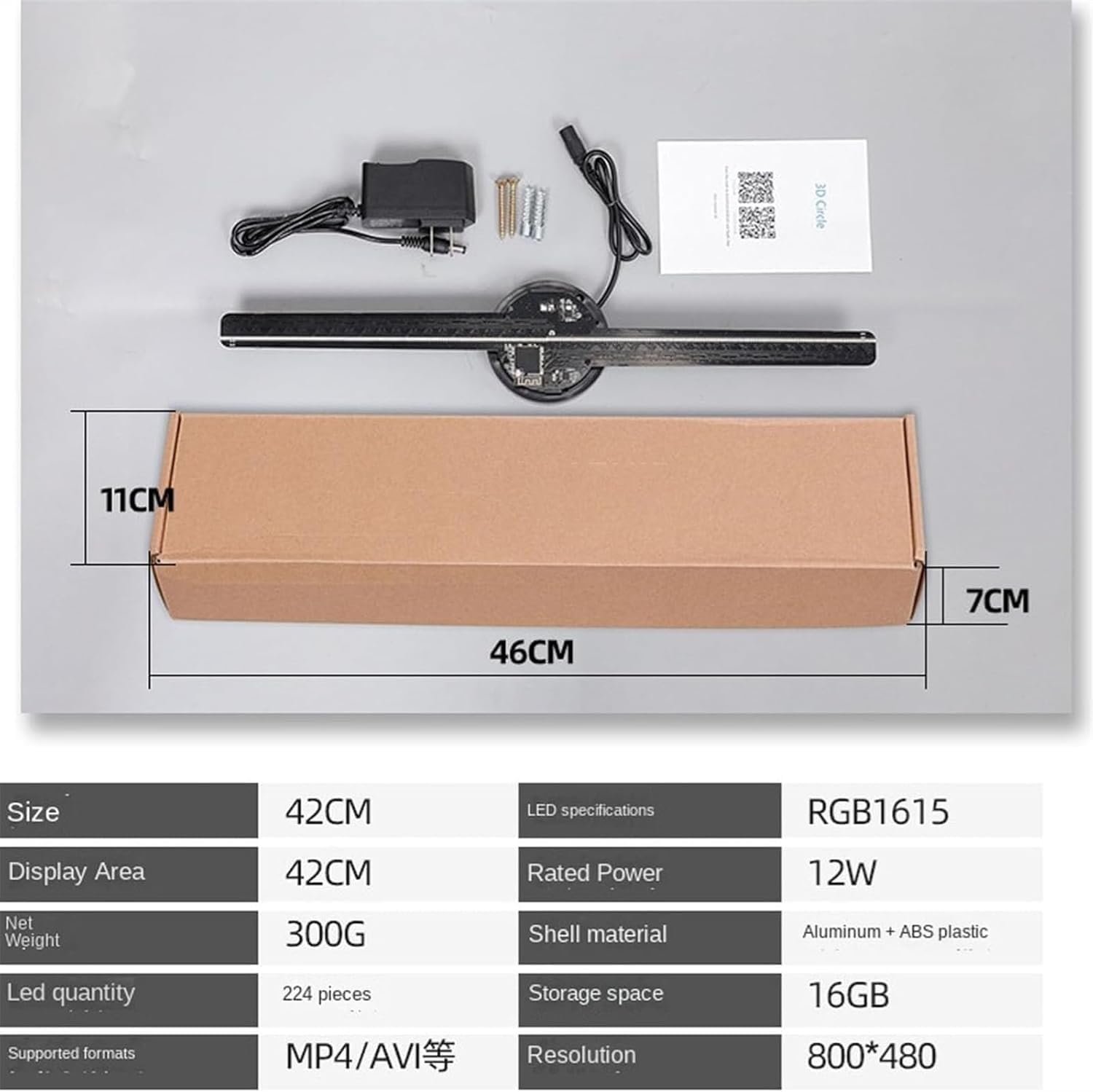 The 3D hologram LED fan projector features a 12.6-inch display with WiFi compatibility, providing seamless operation. It offers 800x480P resolution for high-quality visuals in bright environments and displays borderless, floating images ideal for attracting attention to products. With 224 professional HD LED beads, it creates stunning light and images suitable for various settings like businesses and events. Additionally, it supports multiple control methods, including WiFi, remote, PC, and mobile app control, and is compatible with Windows, Android, and iOS.