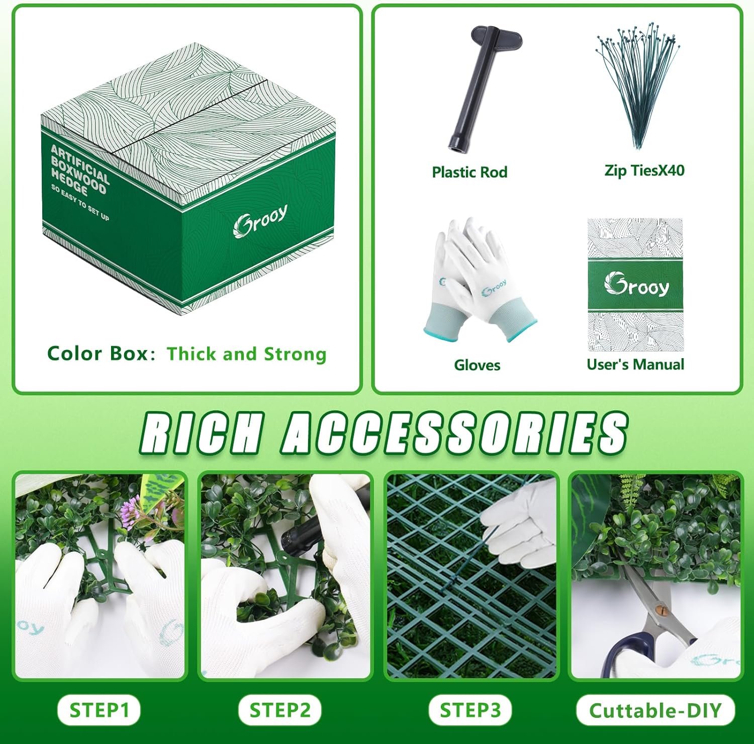 The Grooy Grass Wall offers a stylish decoration option with various themes like Hedge Grass and Dracaena. Priced between $149.99 and $199.99, these walls come in sizes of 20×20 inches and 20×40 inches, and are available in 4 to 16 pieces per set. They feature UV protection and are DIY-friendly. Customer reviews average high ratings, ranging from 4.5 to 4.9 stars across multiple products. The accessible design makes it a popular choice for indoor and outdoor spaces.