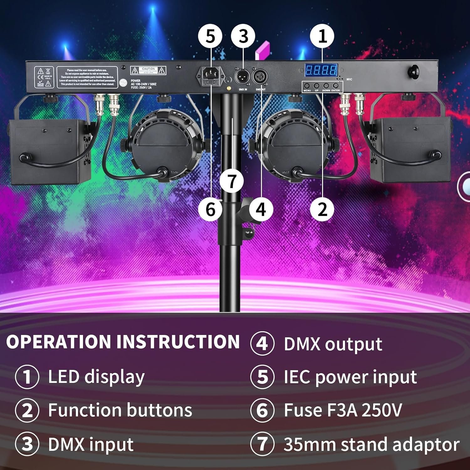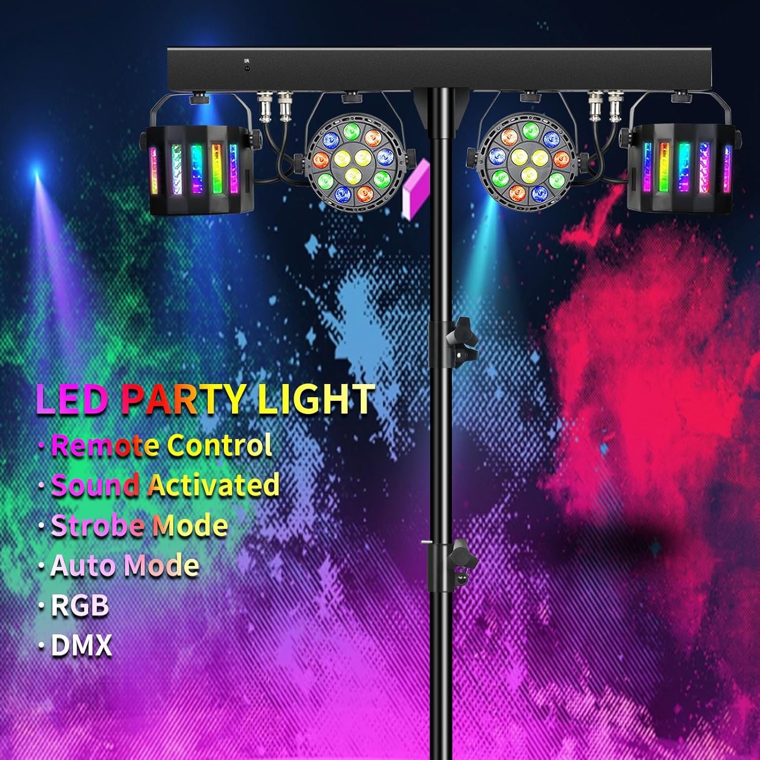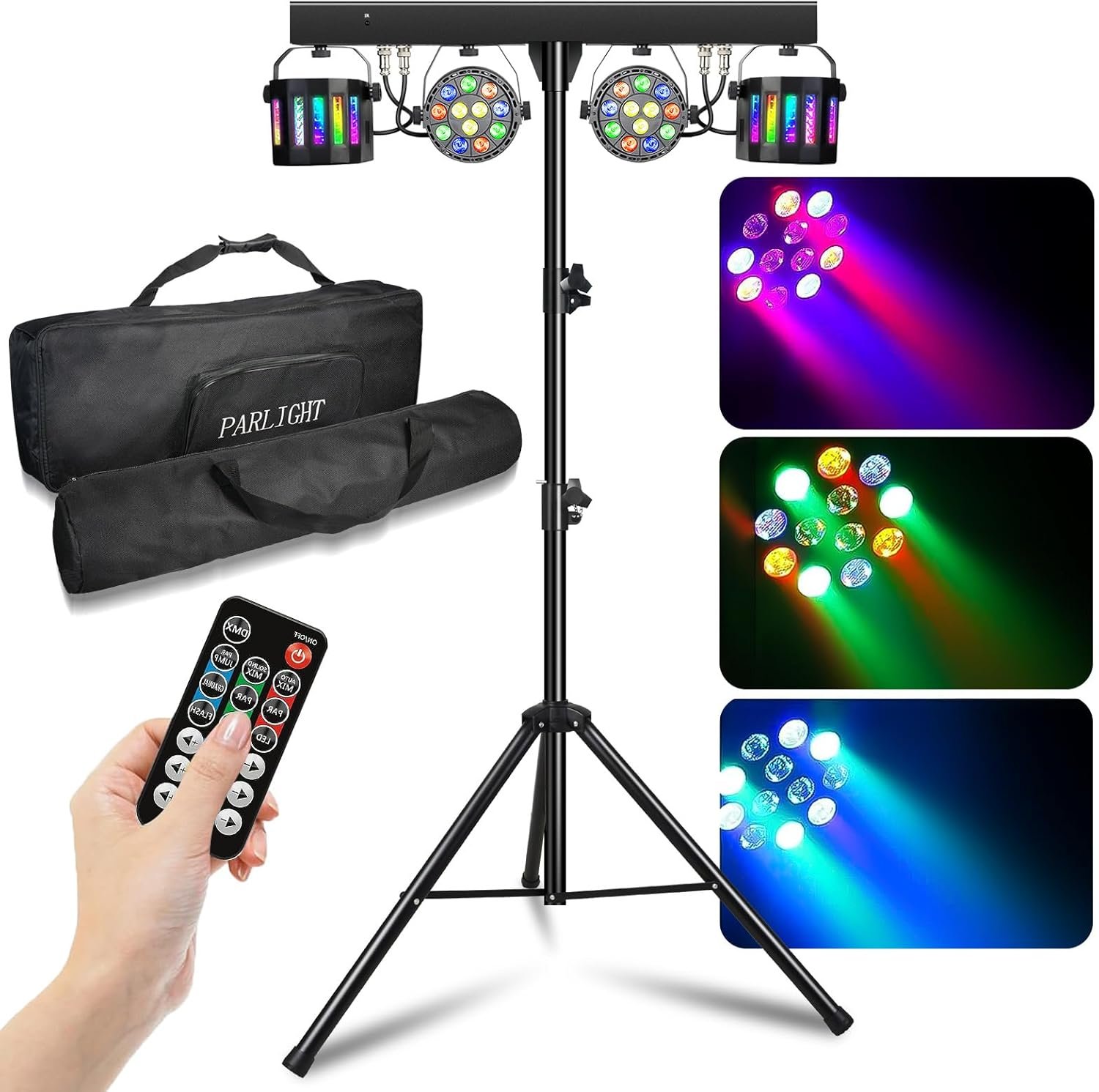 The PL-31C is a 5-in-1 professional stage lighting system, measuring 14.96 x 7.4 x 32.87 inches and weighing 16 pounds. It includes LED Derbies, LED pars, a tripod stand, remote, and storage bags, offering 10 lighting combinations. The lights sync with music, providing dynamic color changes and moods. Featuring adjustable heads and compatibility with various control profiles, installation is quick and portable. Ideal for DJ parties, concerts, and events, it has received a 4.2-star rating based on 13 reviews, manufactured by Guangzhou Gaoding Cross-border E-commerce Co., Ltd. First available on August 5, 2024.