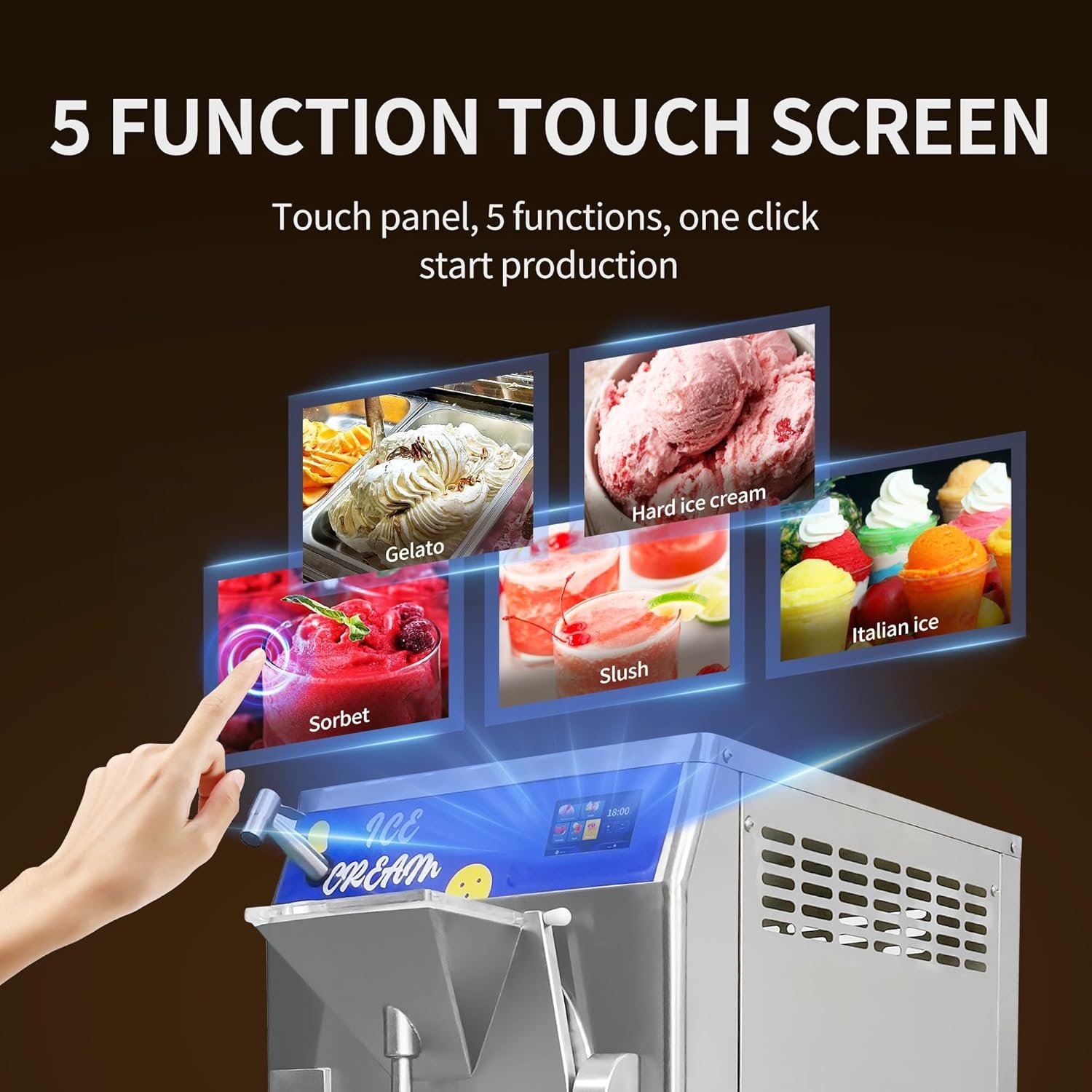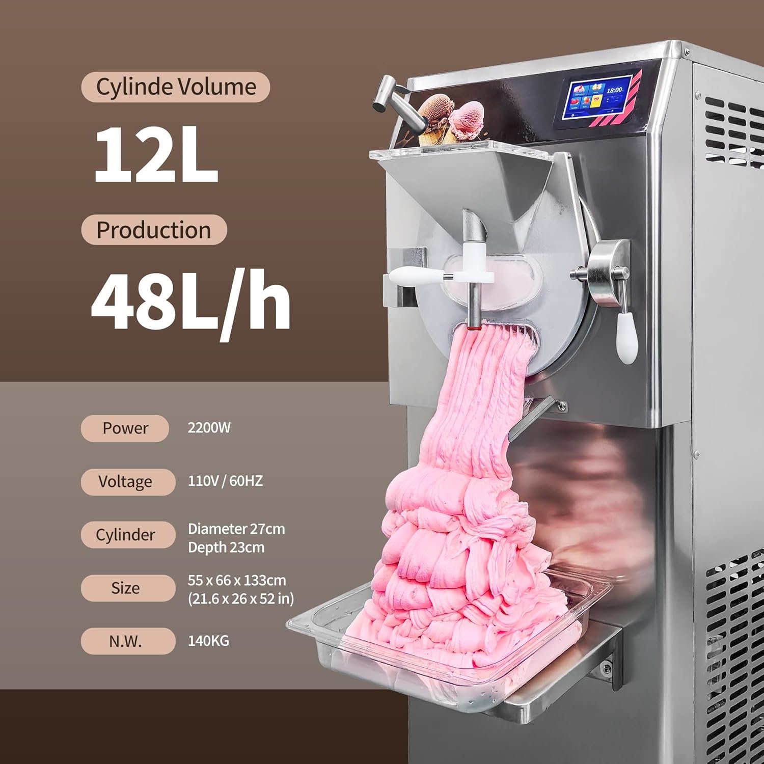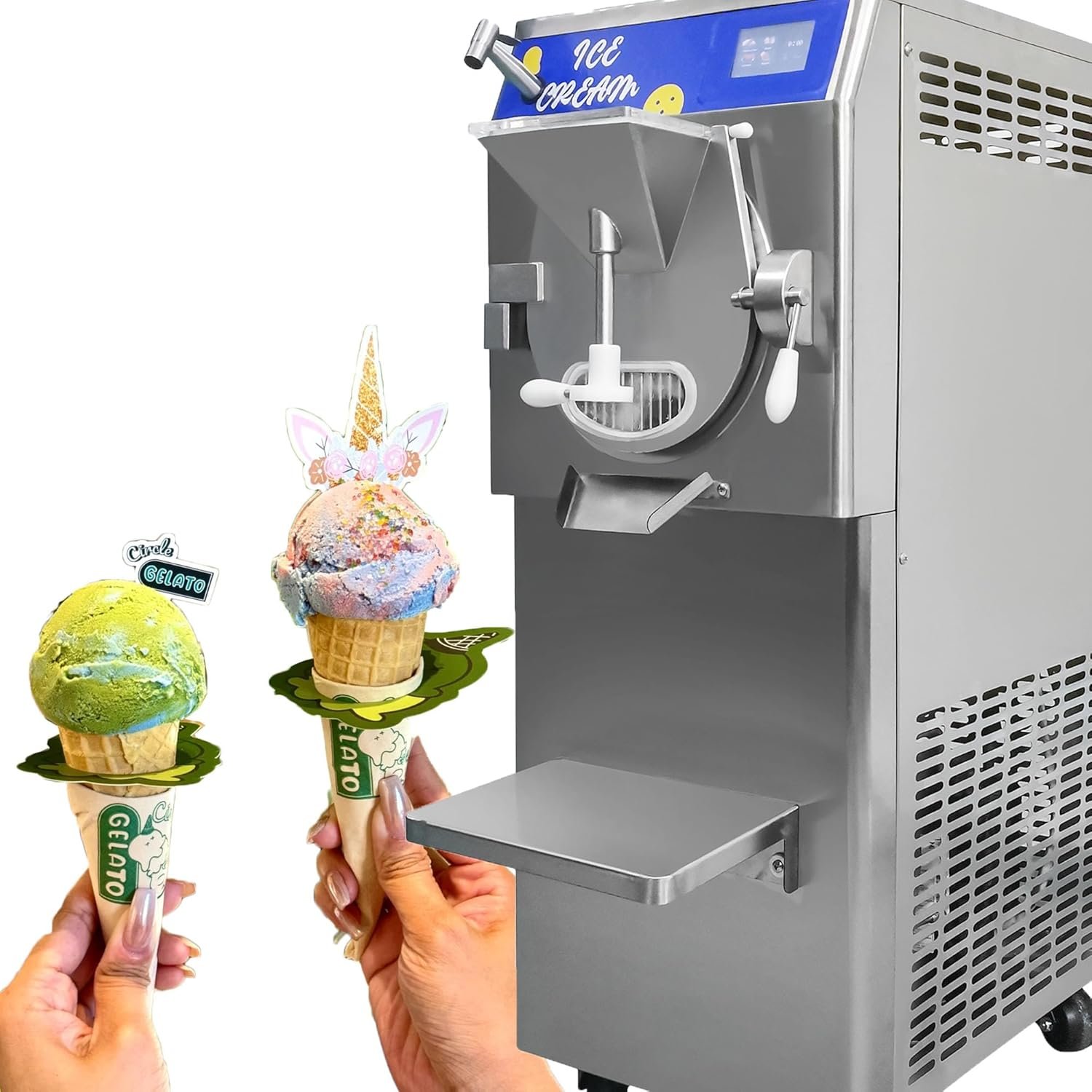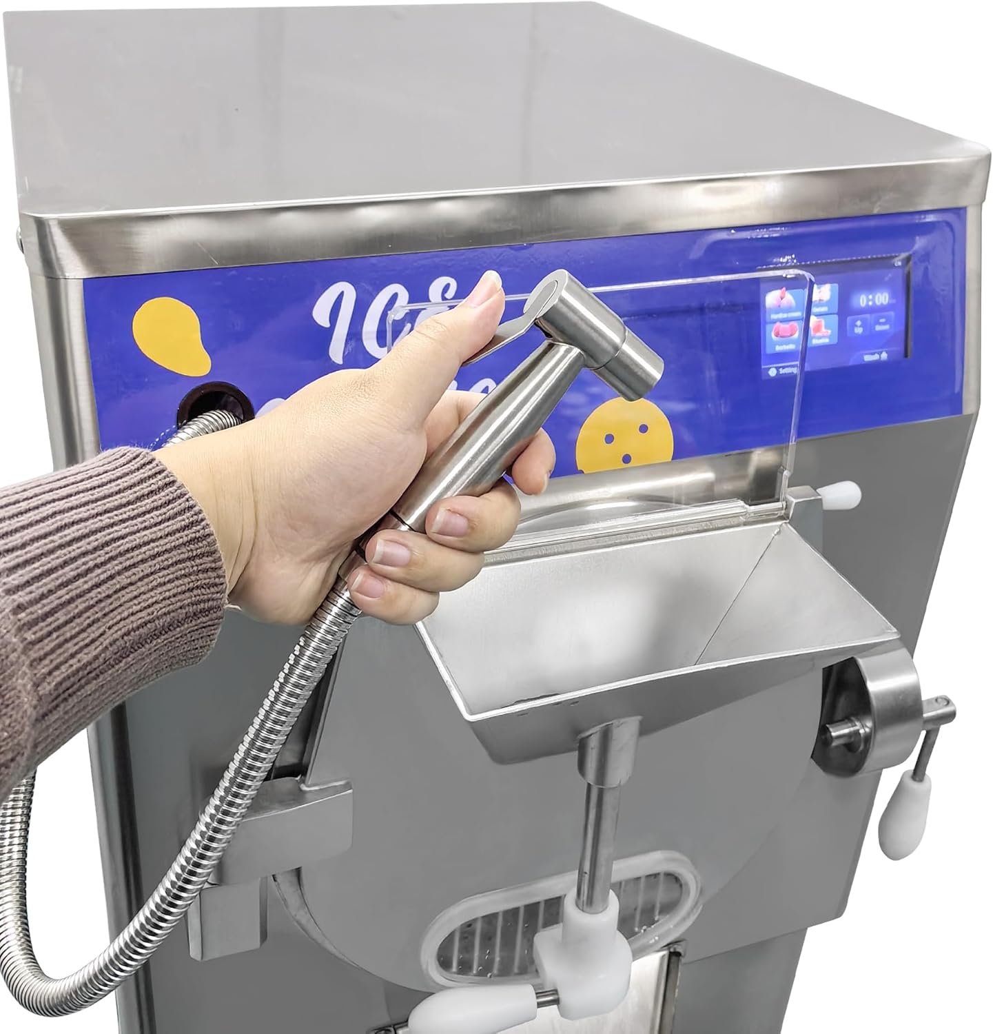 Our experienced sales and service team offers high-quality kitchen electrical equipment, focusing on commercial dessert solutions like ice cream machines. The Hard Ice Cream Machine features a production rate of 48L/H, operates on 2200W power, and includes a user-friendly 5″ LED touch screen for customizable ice cream textures. It efficiently makes hard ice cream, gelato, sorbet, and slush, and is designed for easy cleaning with a stainless steel hinged door. Suitable for various commercial settings, our dedicated after-sales team is ready to assist with any inquiries.