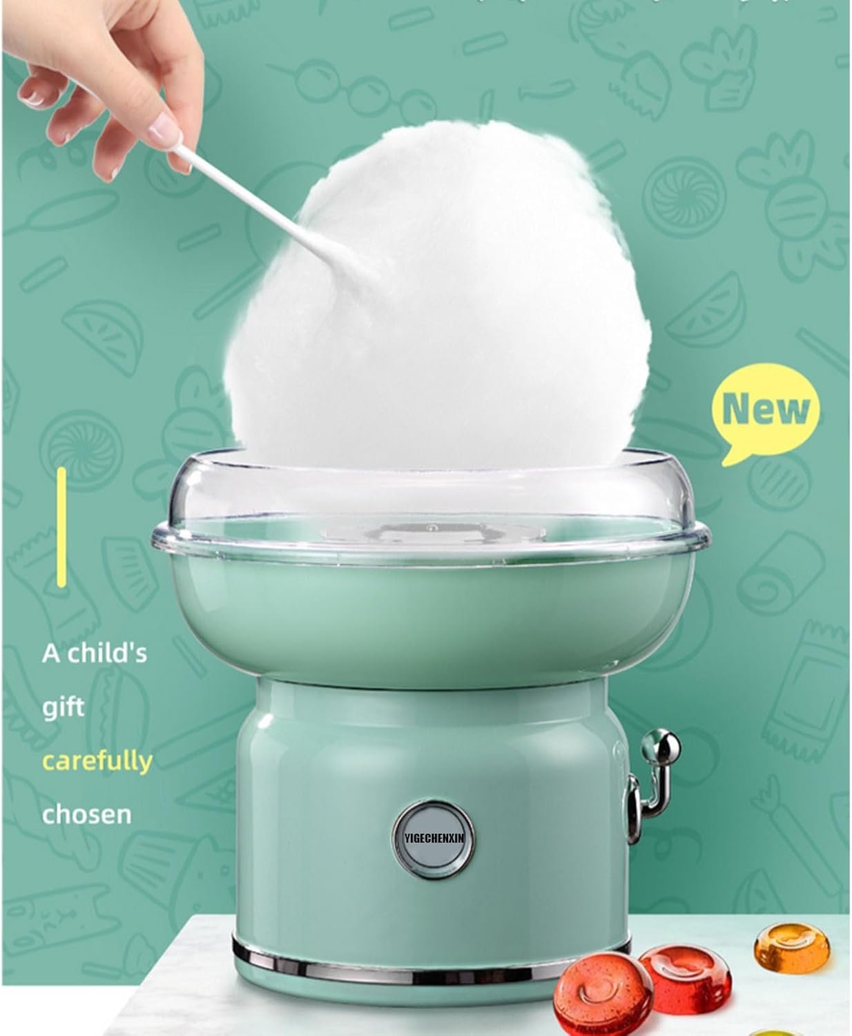 This versatile tabletop marshmallow maker allows families to create fluffy marshmallows using hard or floss candy in just minutes. Features include a transparent edge for easy monitoring, suction cup feet for stability, and a removable bowl for quick cleanup. It operates on 220V with a power rating of 500W. Ideal for home use, parties, or fundraisers, its modern design and retro remote control enhance user experience. The machine’s simple assembly and safety features make it perfect for both parents and children to enjoy making sweet treats together. Customer support is available within 24 hours.