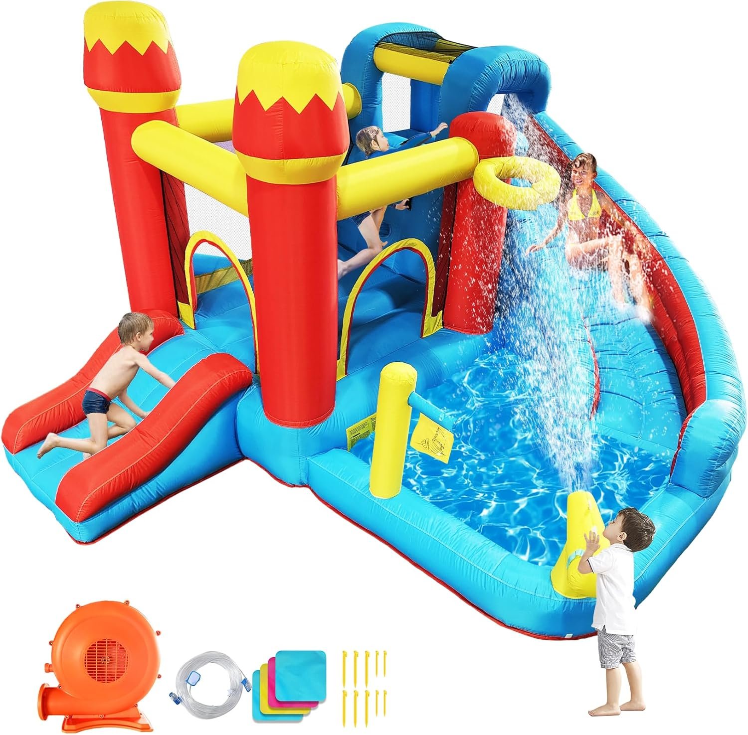 The Sienfix inflatable water slide is a durable, kid-safe backyard attraction made of heavy-duty materials with double-stitched seams. It comes with an electric blower for quick setup, and accessories like a carrying bag and repair patches. Ideal for ages 3-10, it offers various activities such as bouncing, climbing, and water play. The slide can be used year-round, transforming into an indoor jumping castle in winter. Parents can relax in the splash zone while kids play, promoting family fun and healthy activity. It’s a budget-friendly investment for creating lasting summer memories.