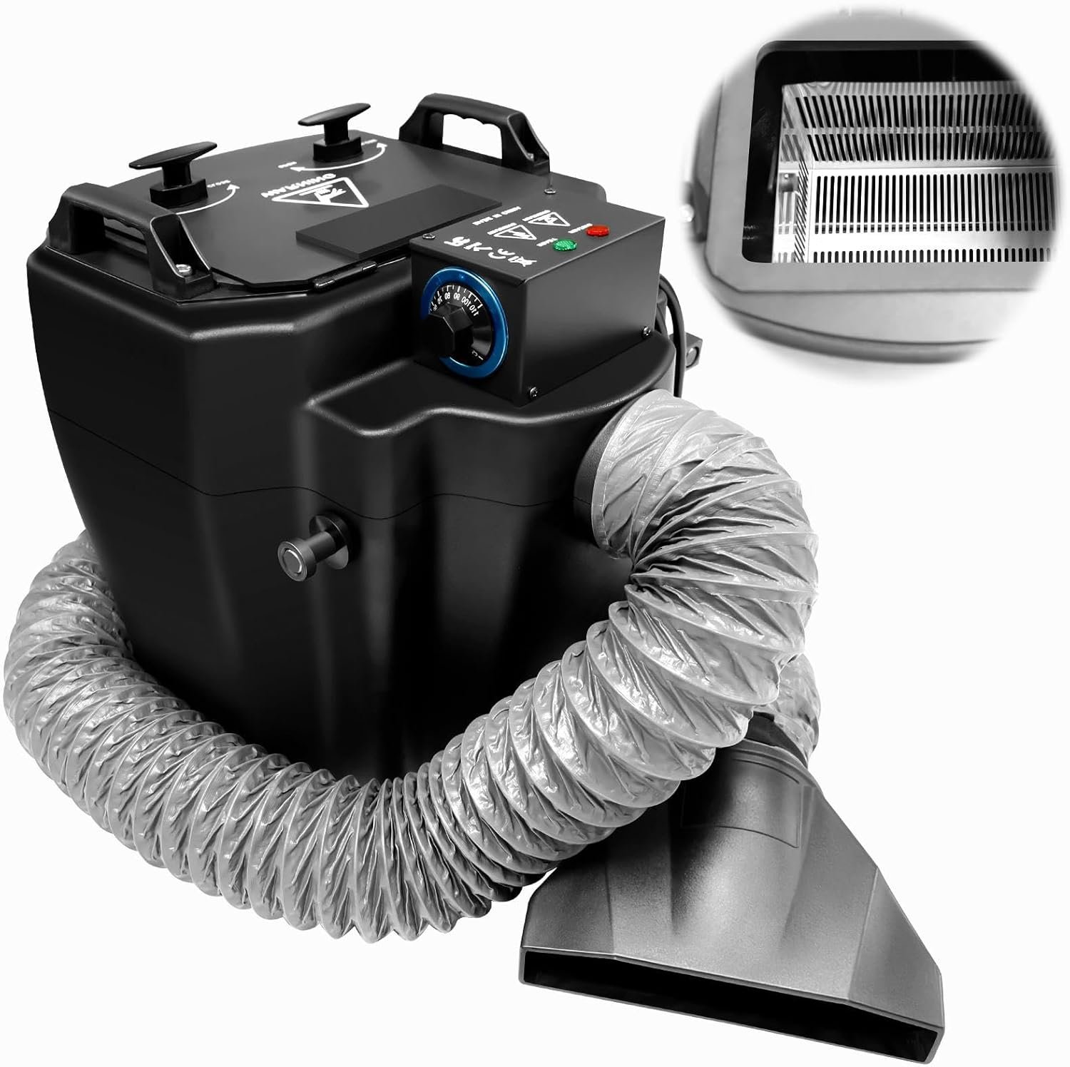 The dry ice fog machine features a user-friendly “OPEN/CLOSE” control knob and a detailed internal structure vital for fog generation. It has precise dimensions (62cm height, 53cm width, 55cm depth) for space planning and accommodates up to 12kg of dry ice and 19 liters of water for extended use. With a powerful 6000W motor, it creates dense fog and offers intelligent safety features to prevent overheating. Its durable, leak-resistant construction ensures reliability, making it perfect for events like weddings and concerts, covering approximately 2000ft².
