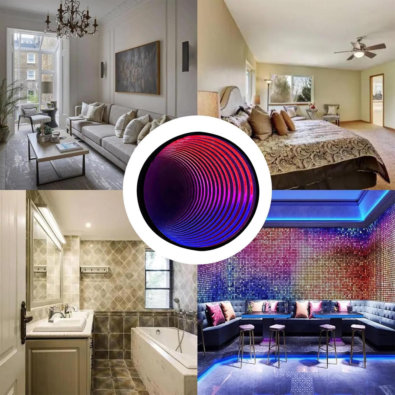 The Infinity Mirror Tunnel Light offers a captivating visual experience with its endless tunnel effect and 358 color options controlled via remote or smart app. Its cool quadrilateral design enhances any space, making it perfect for various settings like homes, weddings, and parties. Easy to install, it features a hanging hole for straightforward mounting, typically completed in 10-15 minutes. This versatile light creates dynamic or static moods, making it an ideal gift for children’s rooms, bedrooms, and more, adding a touch of magic and relaxation wherever placed.