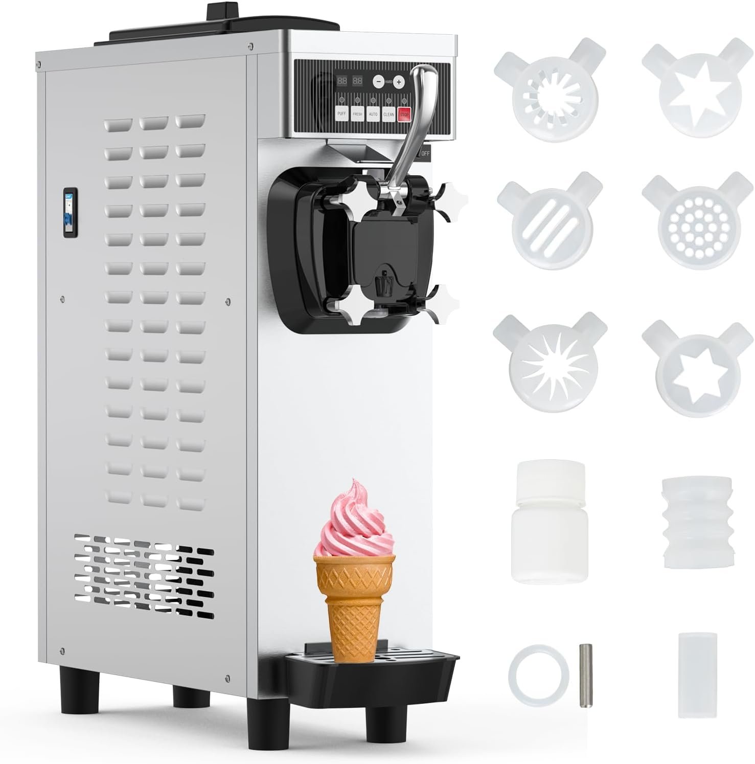 ACEKOOL offers a range of ice cream machines, including soft serve and commercial slushy options, designed for high productivity and ease of use. With 1.85-gallon stainless steel hoppers, these machines produce 4.7-5.8 gallons of ice cream per hour. They feature a pre-cooling function for optimal texture, a smart control panel for customizable settings, and an automatic cleaning option for easy maintenance. Compact and versatile, these machines are ideal for various environments like homes, cafes, and restaurants, making them perfect for dessert enthusiasts and business owners alike.