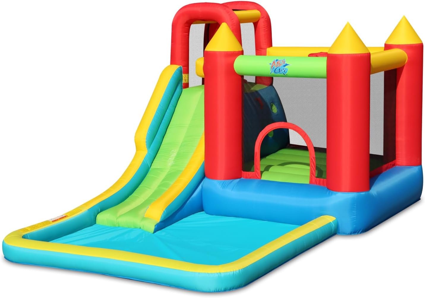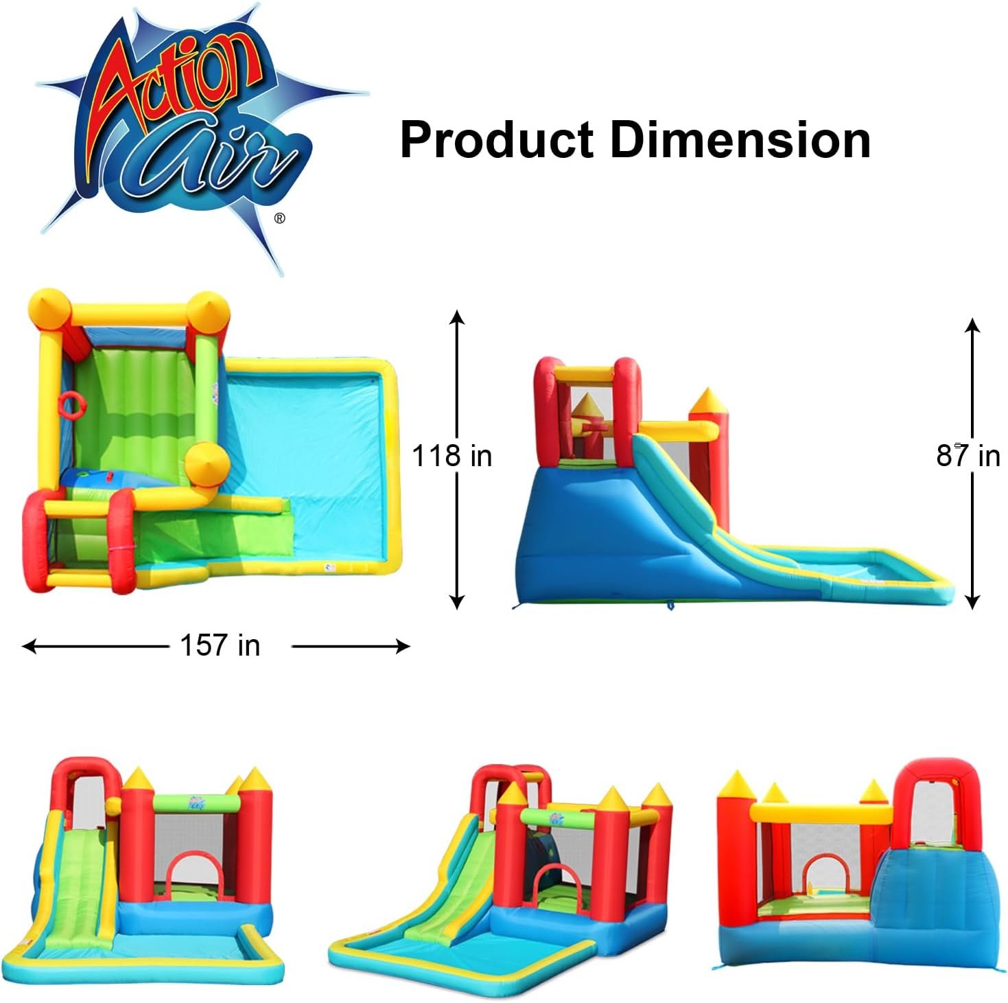 Action Air Inflatable Bounce House with Blower, Big Bouncy Area and Slide, Durable & Extra Thick Bouncy Castle for Kids, Indoor/Outdoor Fun, Easy Setup, Safety Netting & Carrying Bag Included