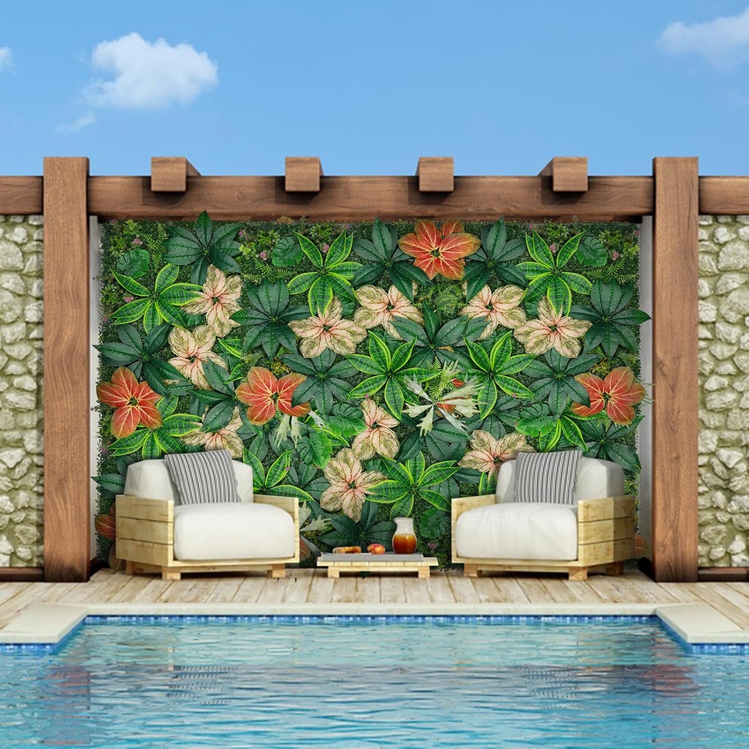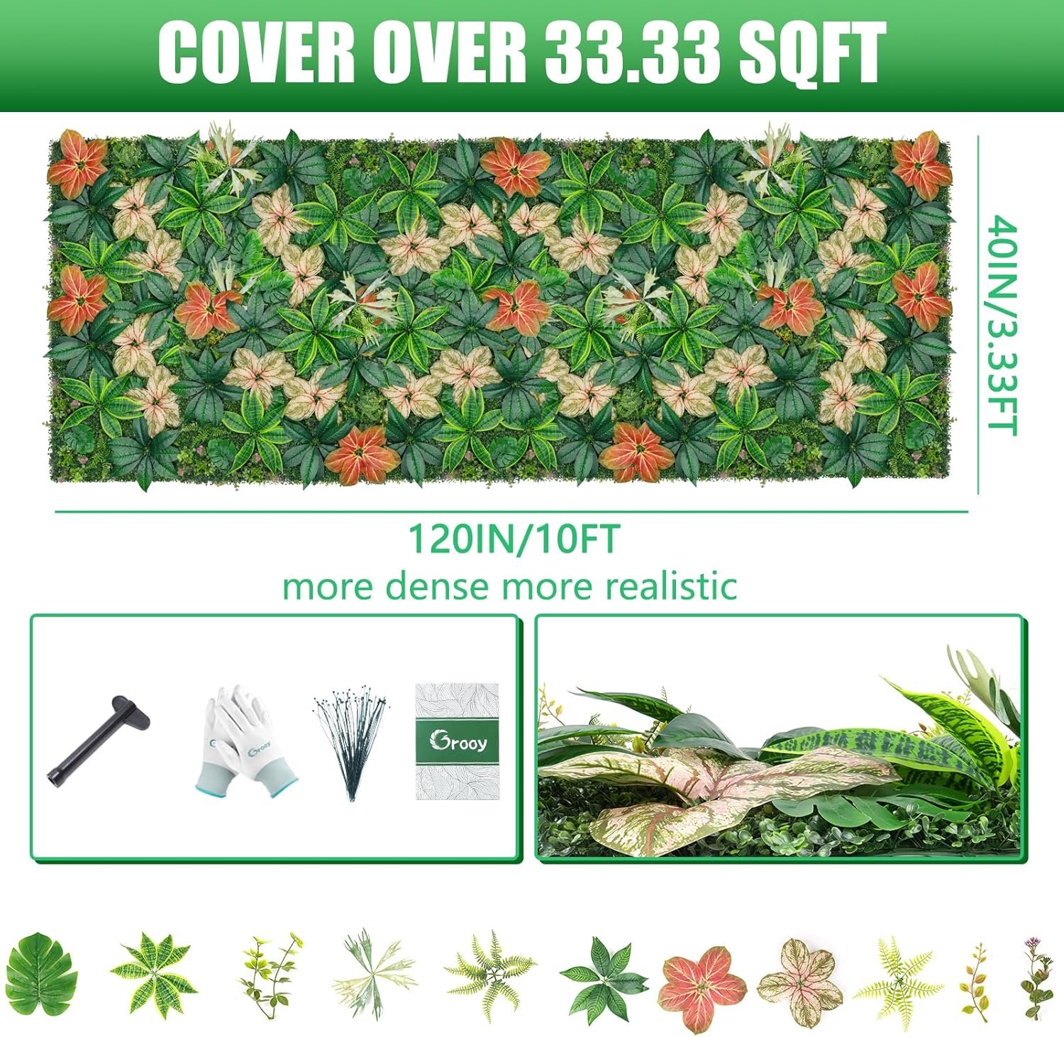 The Grooy Grass Wall Panel is a versatile, dense artificial grass panel measuring 40×120 inches, covering over 33.3 square feet. Ideal for both indoor and outdoor use, it enhances the aesthetic of various spaces. Made from safe, weather-resistant polyethylene, it’s UV-tested for durability. The panel comes ready for installation with accessories like zip ties and a guide, and customization is easy with basic cuts. Customer ratings average around 4.5 stars, reflecting satisfaction. Note: Shipping may temporarily affect the appearance, but leaves recover naturally after a few days. Price ranges from $119.99 to $159.99.