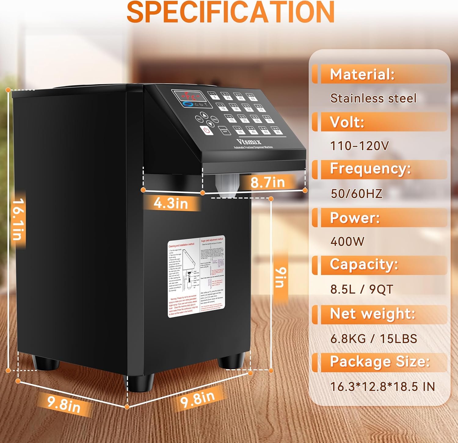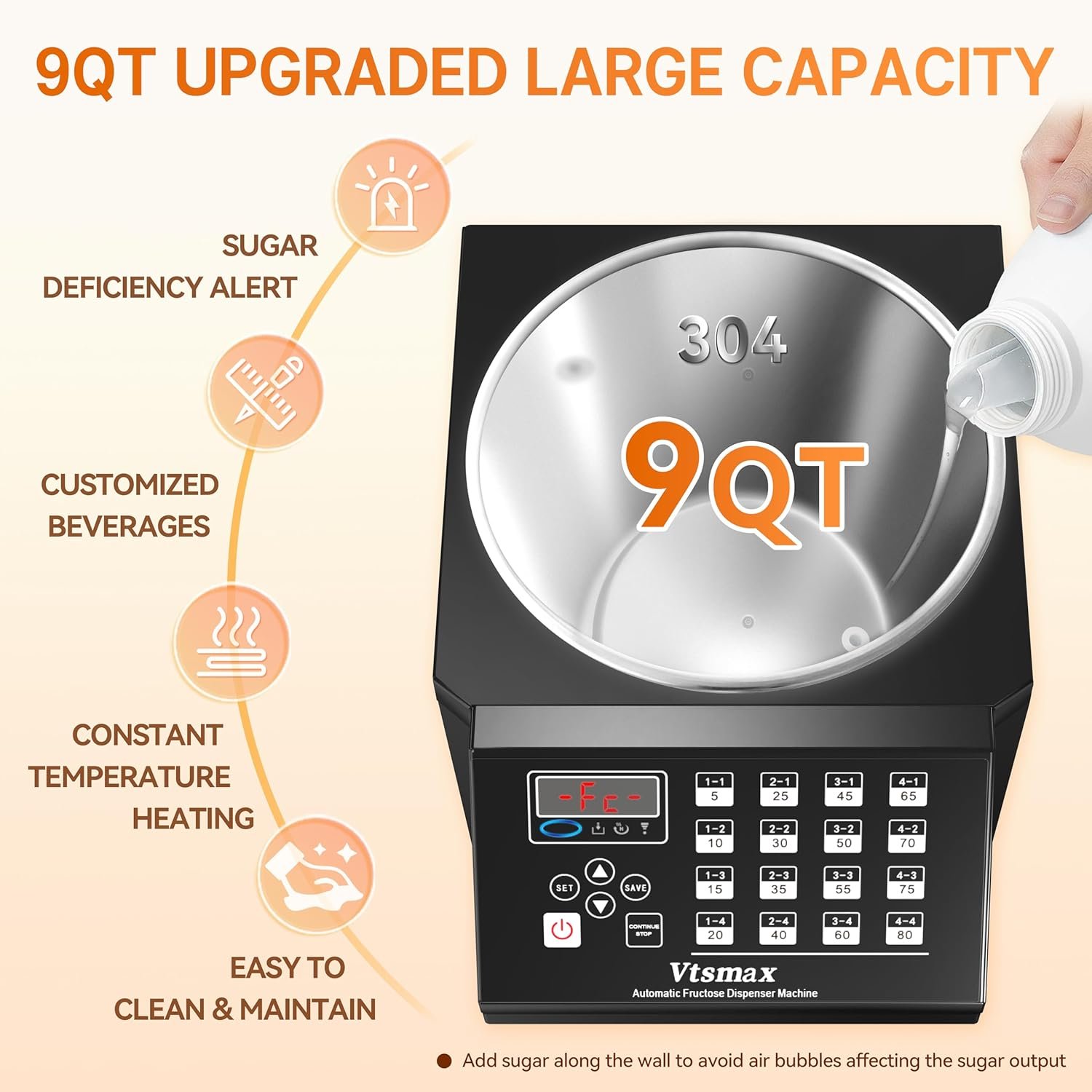 Automatic Fructose Dispenser Machine for Commercial, Upgrade 9QT High Capacity 304 Stainless Steel Syrup Dispenser for Bubble Tea and Coffee Shop, Bakery(Black)