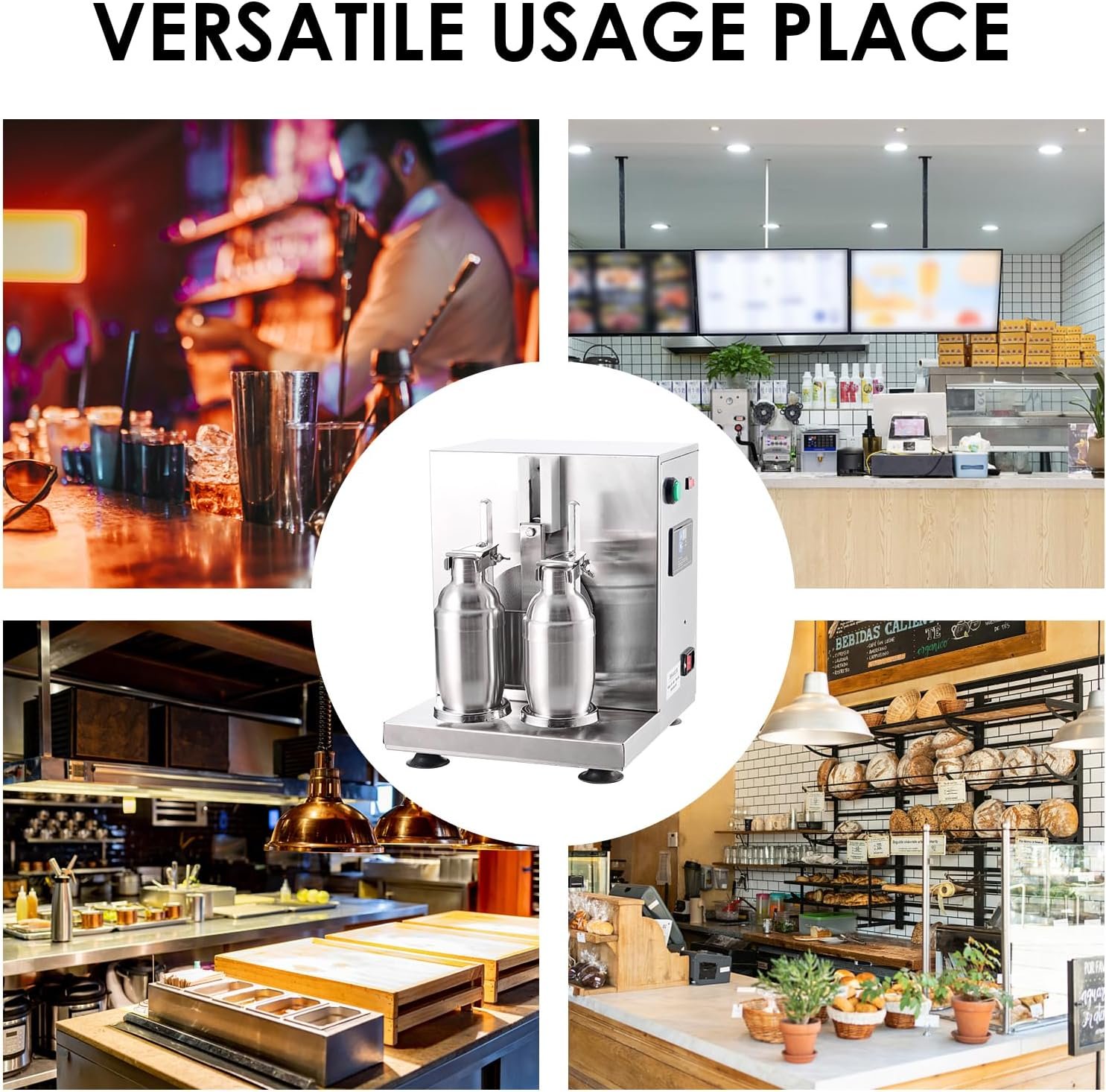 The Automatic Double Frame Milk Tea and Cocktail Shaking Machine is a versatile, high-efficiency mixer designed for commercial use. It features dual 750ml stainless steel cups and operates at 400 r/min, making it ideal for milk tea, cocktails, and other beverages. With an intelligent control panel, users can set the shake time (1-180 seconds) easily. The machine’s durable construction ensures longevity and easy cleaning, while its adjustable cup height accommodates various sizes. Suitable for restaurants and beverage shops, it boosts productivity and simplifies drink preparation, coming with additional accessories for convenience.