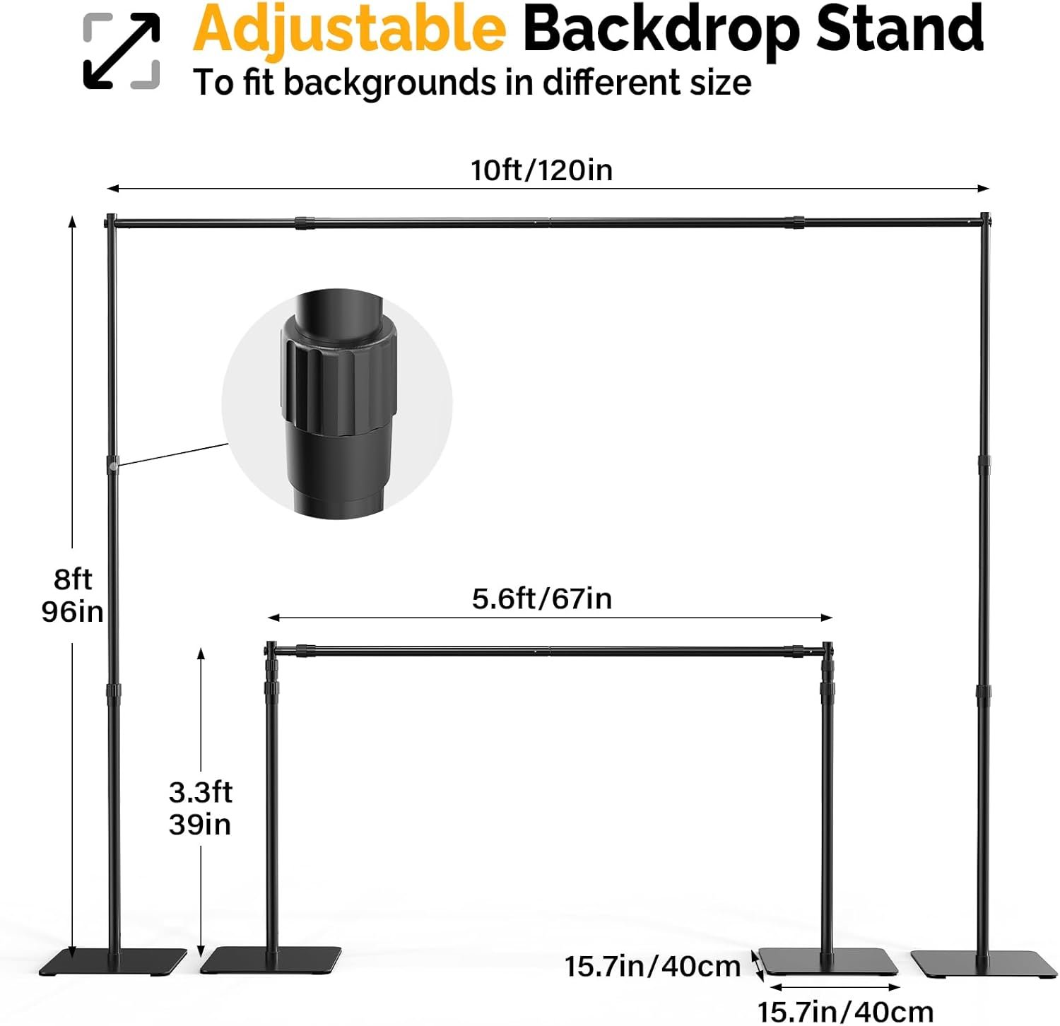 The ShowMaven Backdrop Stand is a robust and adjustable solution for various events, capable of supporting backdrops of multiple sizes. It features a heavy-duty metal base for stability and can be adjusted from 67″ to 120″ in width and 39″ to 96″ in height. Made of thick aluminum, it holds up to 44 lbs. Easy to assemble in about 5 minutes without tools, this stand is ideal for photography, weddings, and parties, securely accommodating canvas, muslin, and other backdrop materials.