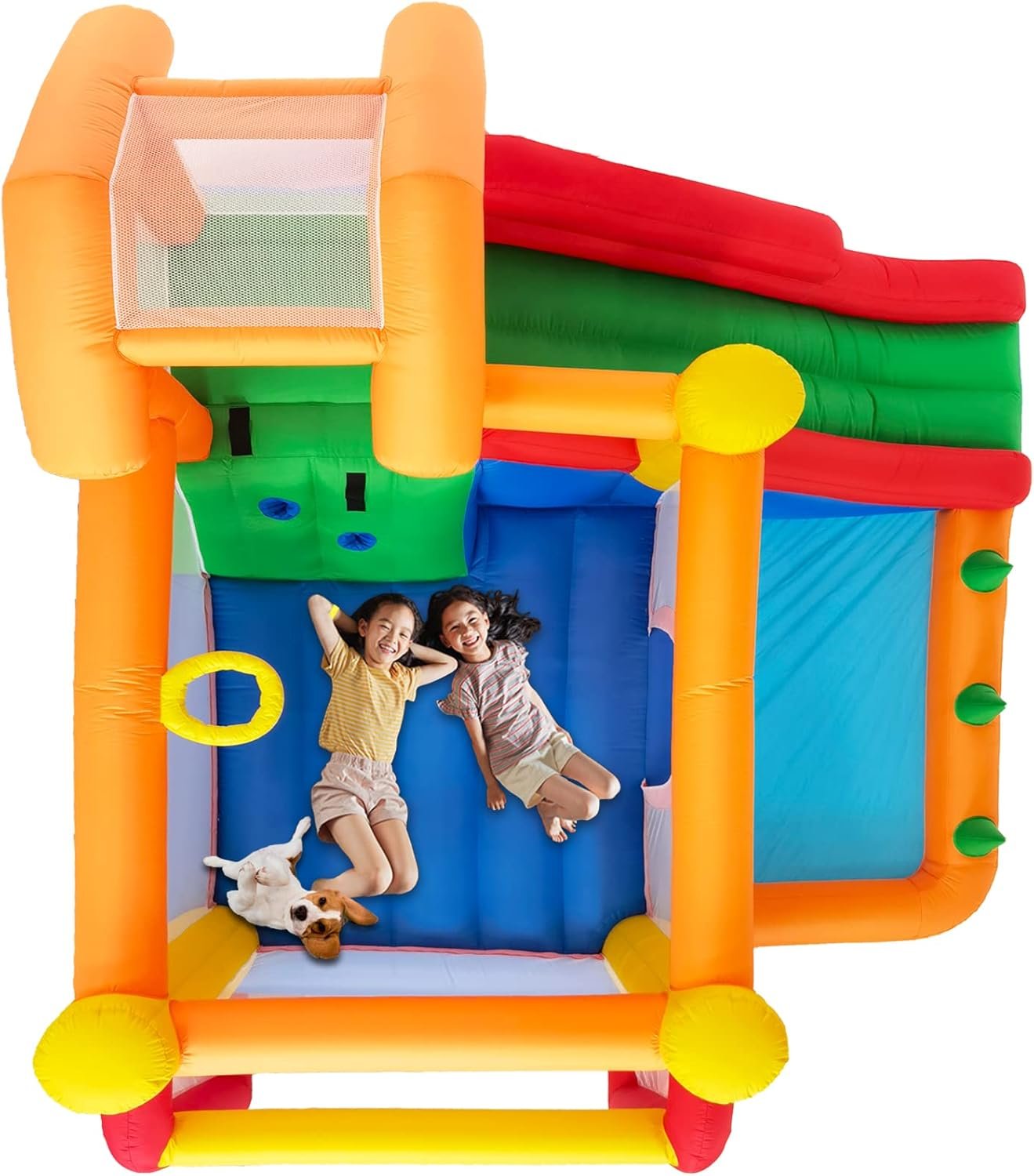 Customers find the inflatable bouncer easy to set up and appreciate that it’s great for ages 2-10, with one mentioning their kids had hours of fun with it. The air pump works well, and one customer notes it takes about 30 seconds to blow up. While the material is strong and holds up to abuse, several customers find the size smaller than expected, particularly noting it’s way too small for four kids.