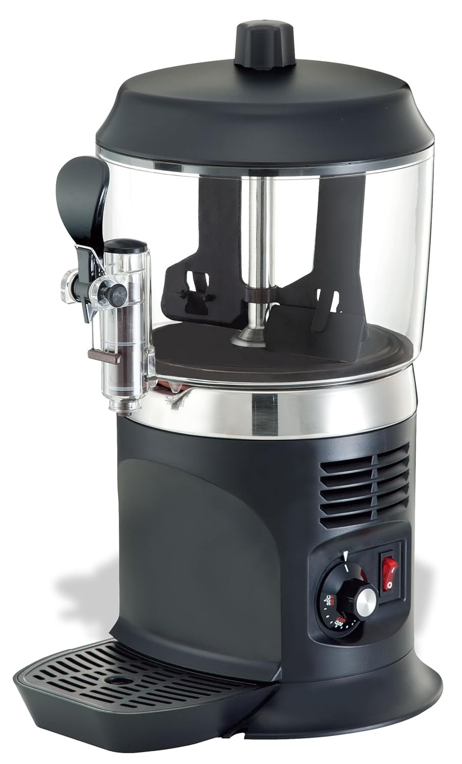 This 5-quart heated dispenser features rotating paddles for serving beverages, toppings, and sauces. It has an adjustable thermostat with 1100 watts of heating capacity. The removable clear polycarbonate bowl is easy to clean, dishwasher-safe, and allows for refrigerated storage of leftovers to minimize waste. A convenient removable drip tray simplifies maintenance. Product dimensions are 13 x 10 x 20 inches, weighing 15 pounds. Manufactured by Benchmark USA, it has been available since October 28, 2011.