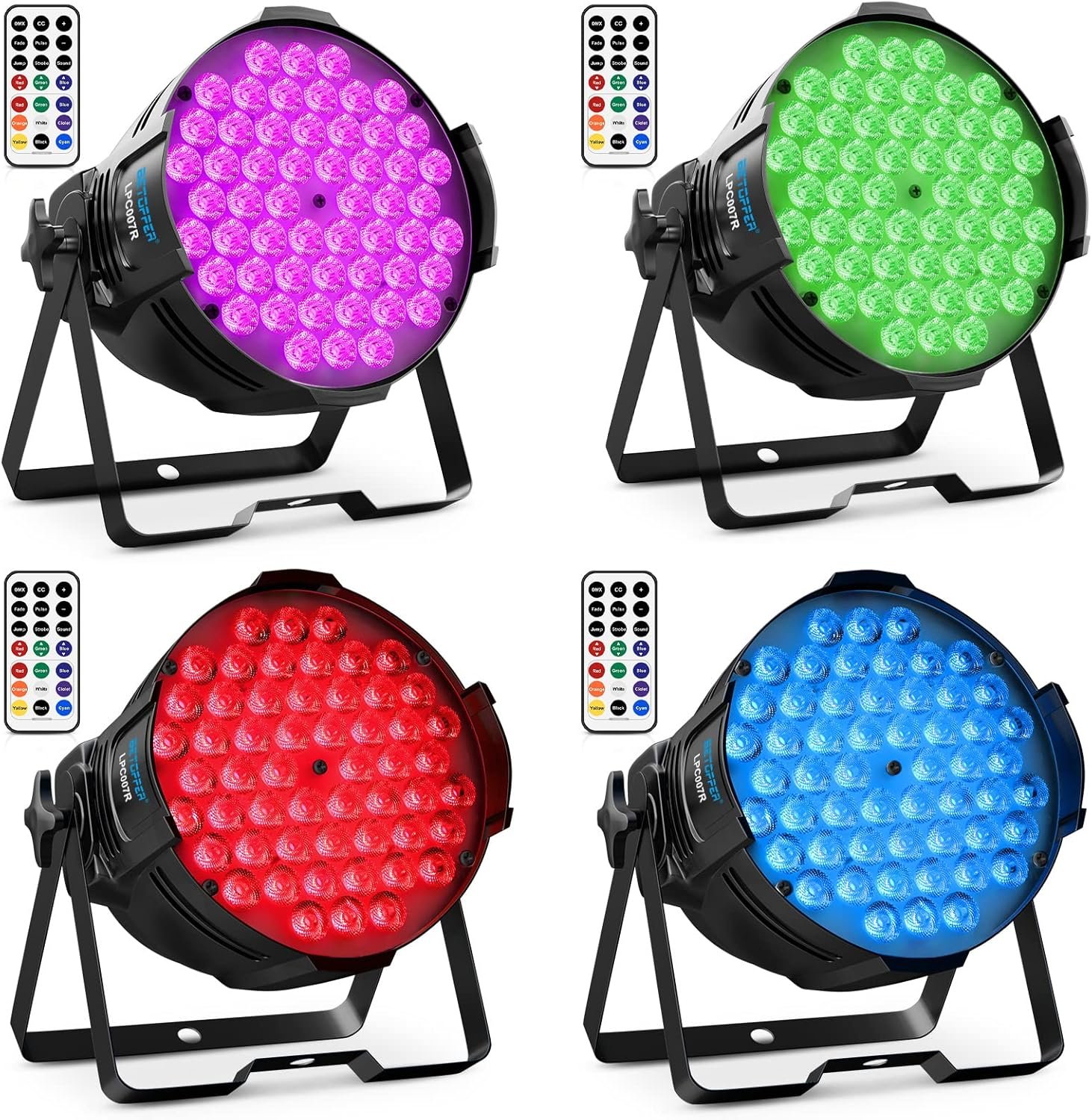 BETOPPER LED Stage Light, 54x3W DJ Lights with Remote Control, RGB Sound Active Stage Lighting, Indoor DMX-512 Par Light Can, Illuminate Your Event,Parties,School Events,DJ Live Show,4 Packs