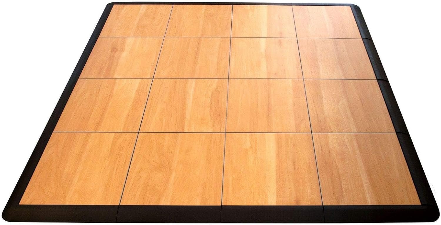 The SnapLock Dance Floor Kit is an ideal solution for at-home dance practice, featuring a dark maple finish and tool-free assembly. It includes interlocking polypropylene panels that snap together in minutes, suitable for indoor and outdoor use. Water, warp, and stain-resistant, the lightweight and portable kit enhances sound quality for various dance styles. The durable wood-look laminate offers easy maintenance, while the complete kit comes with polished edges and a 12-year limited warranty, making it a great choice for dance enthusiasts. Made in the USA, it combines convenience with lasting quality.