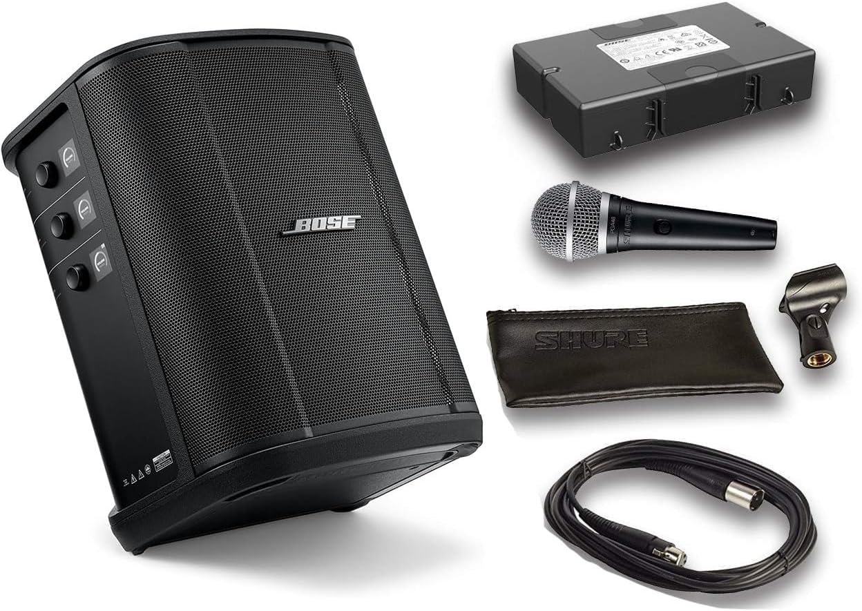 Bose S1 Pro Plus Bluetooth Speaker System Bundle with Battery, Shure PGA48 Microphone, 15ft XLR Audio Cable (6 items)