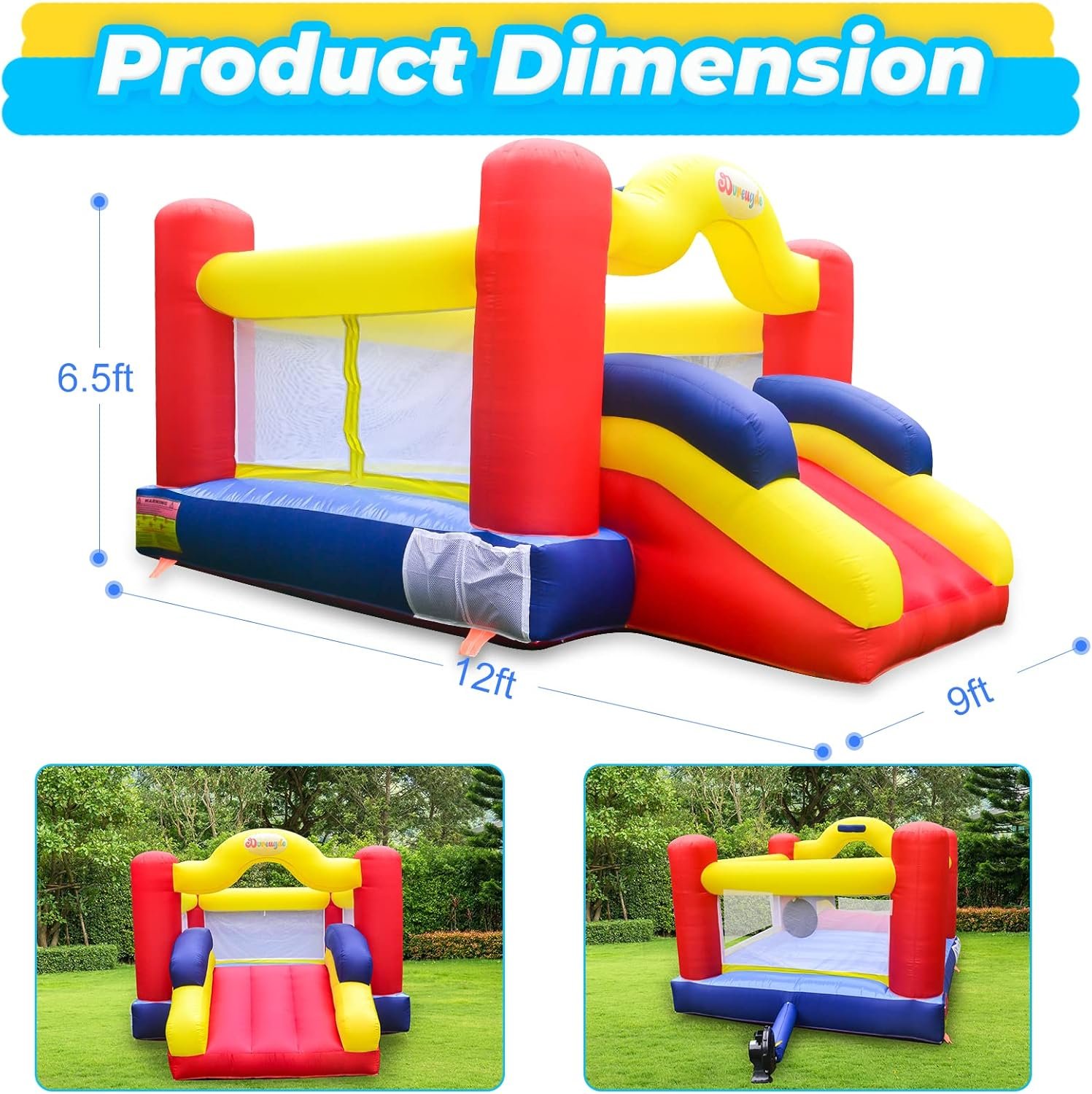 Bounce House, Inflatable Bouncer with Air Blower and Slide, Family Backyard Bouncy Castle with Dart Ball Game, Bouncy House for Kids, 12 ft x 9 ft x 7 ft H