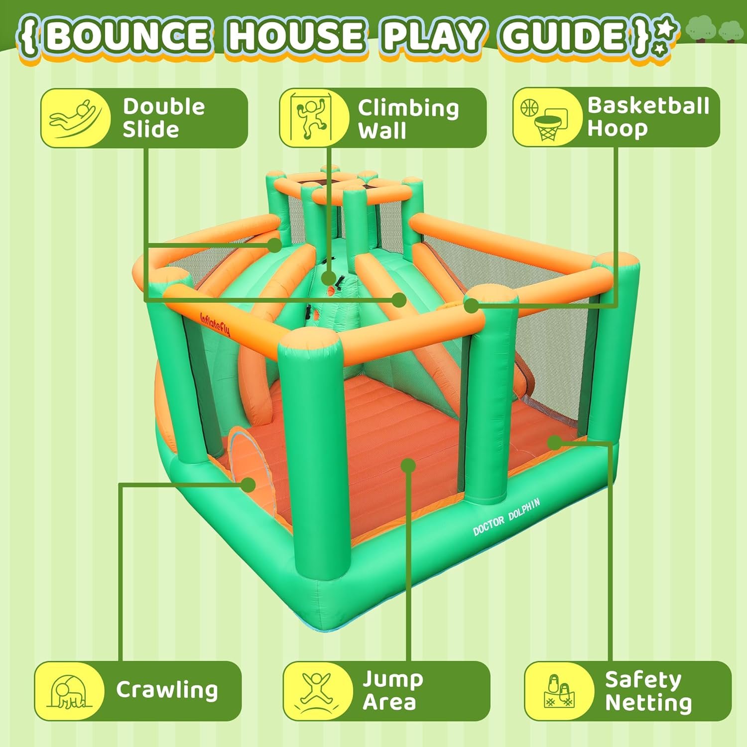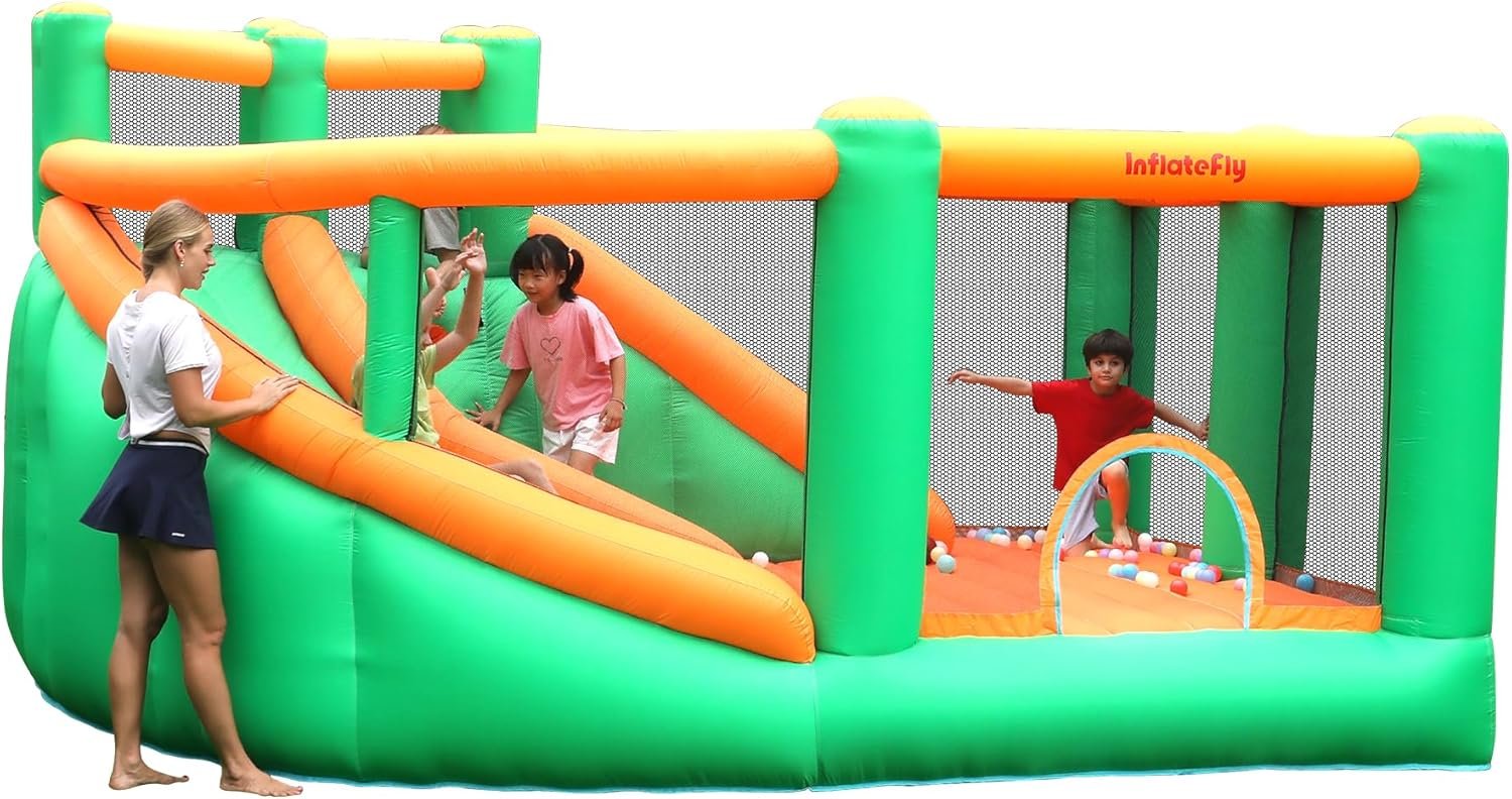 INFLATEFLY specializes in premium inflatable products, symbolized by a blimp representing peace and love. The brand aims to create joyful experiences for all ages and supports those in need by donating products. Their offerings include various bounce houses designed for safety and fun, featuring options like dual slides and large jumping areas, suitable for events like birthday parties and weddings. Each bounce house is crafted from durable materials and includes safety features to ensure enjoyable play for children, making them versatile and convenient for different occasions.