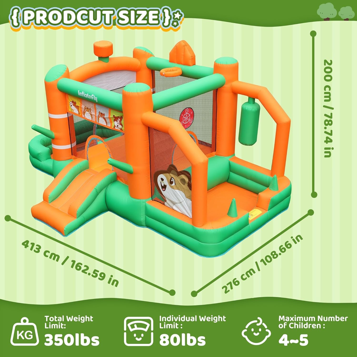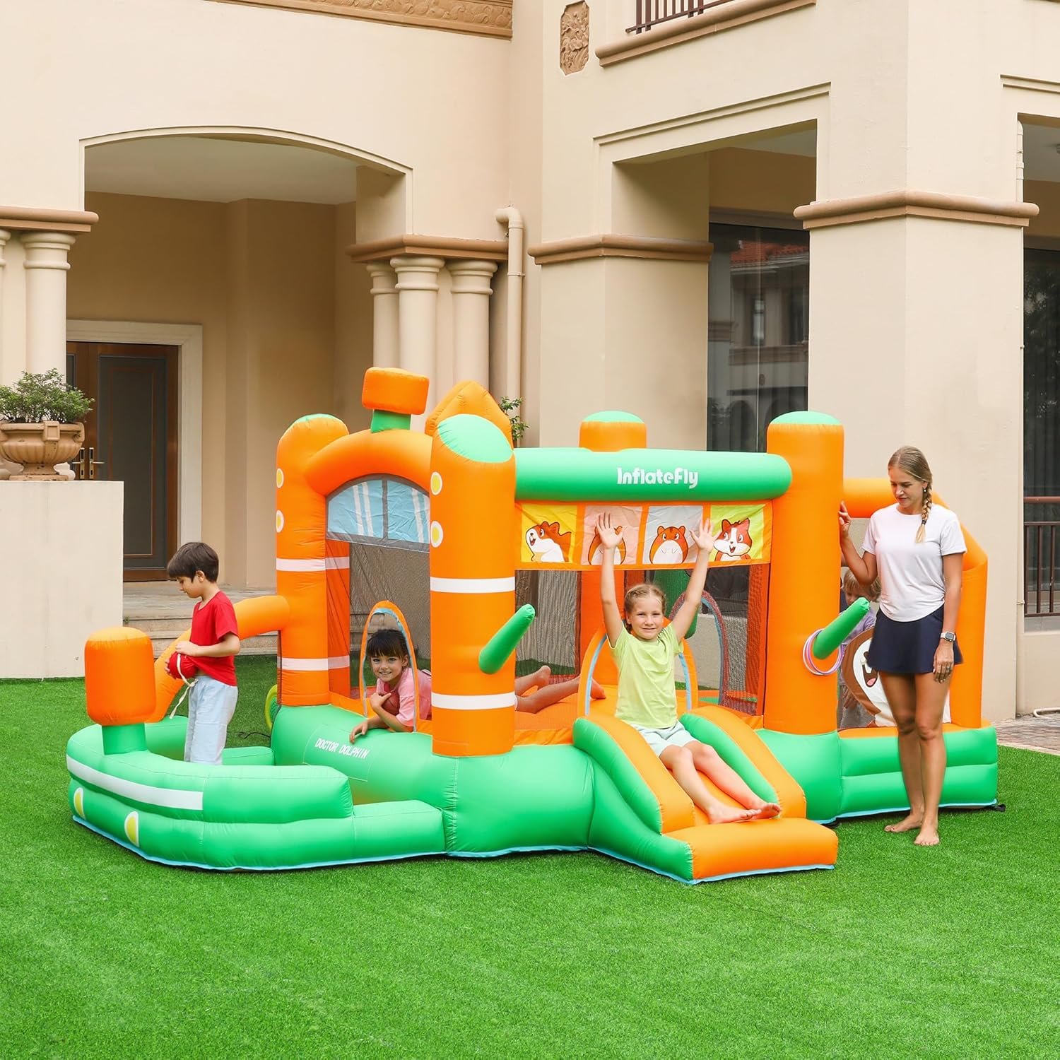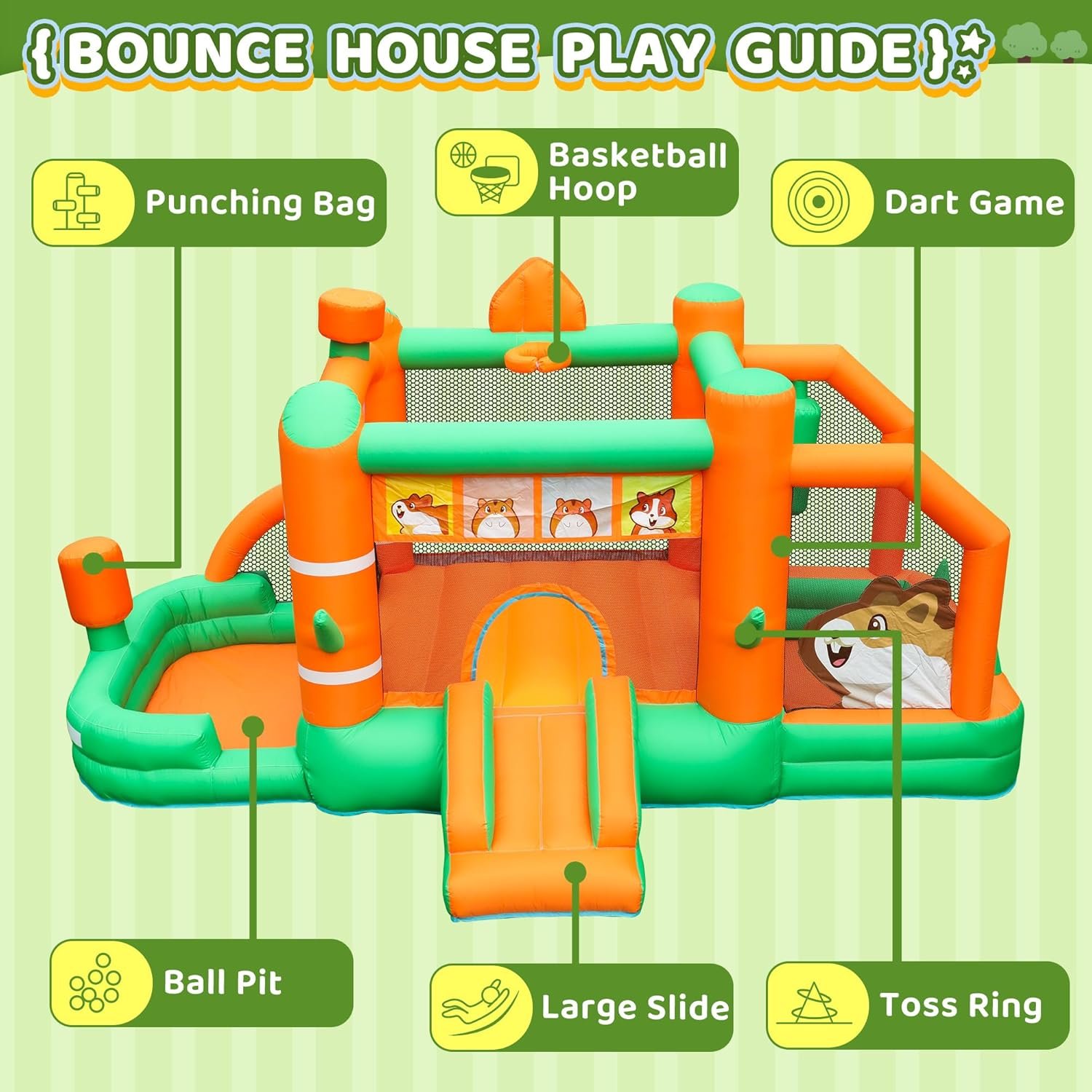 Bounce House Inflatable Slide Hamster Jumping Bouncer Kids Bouncy Castle with Blower for Wet and Dry