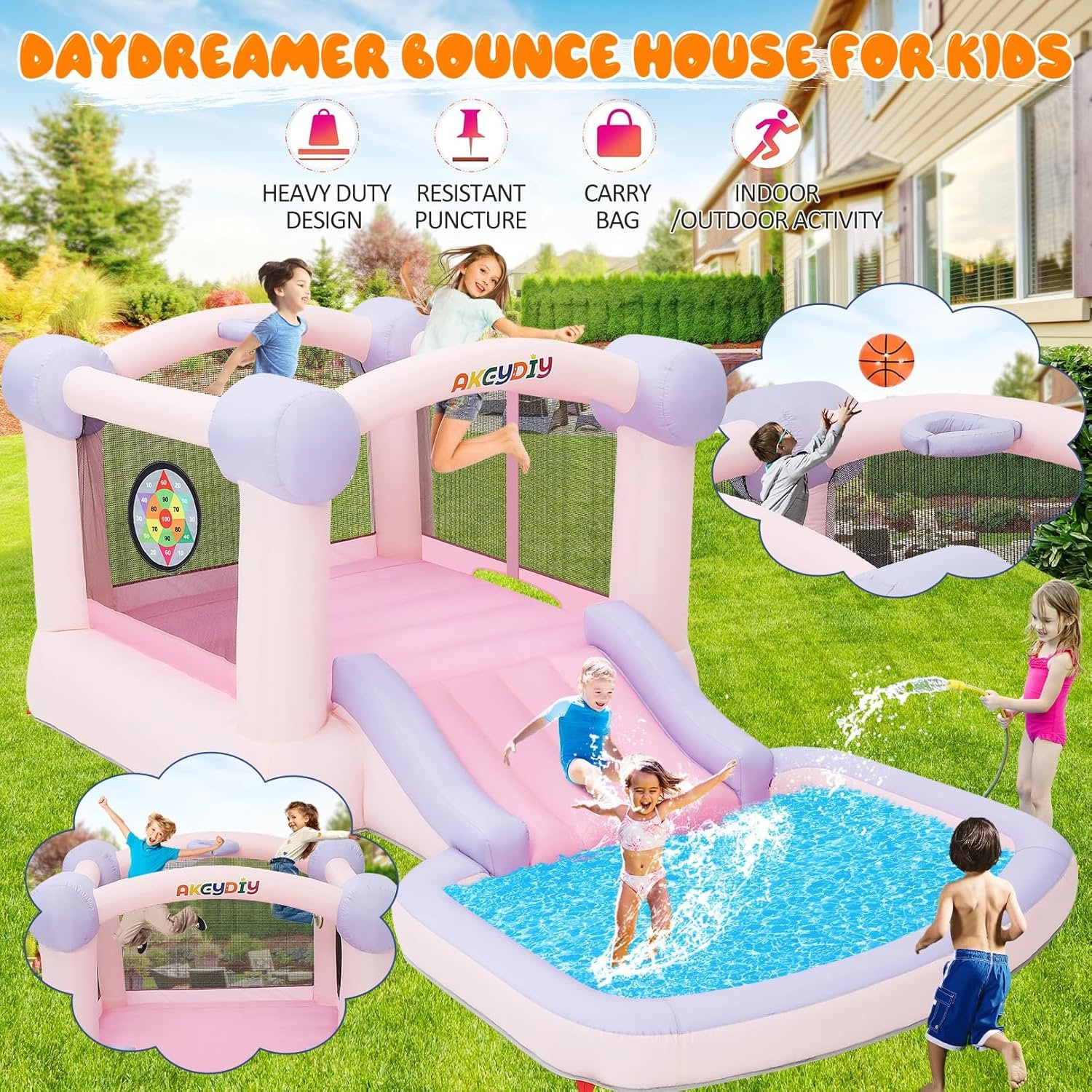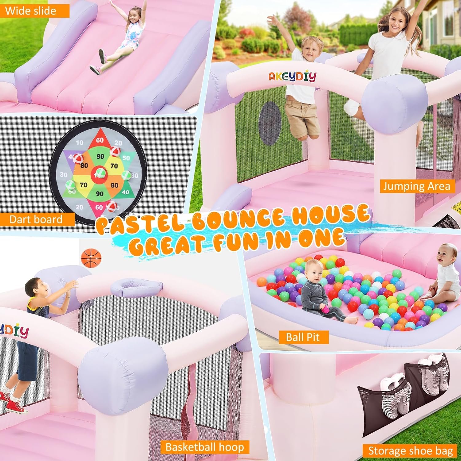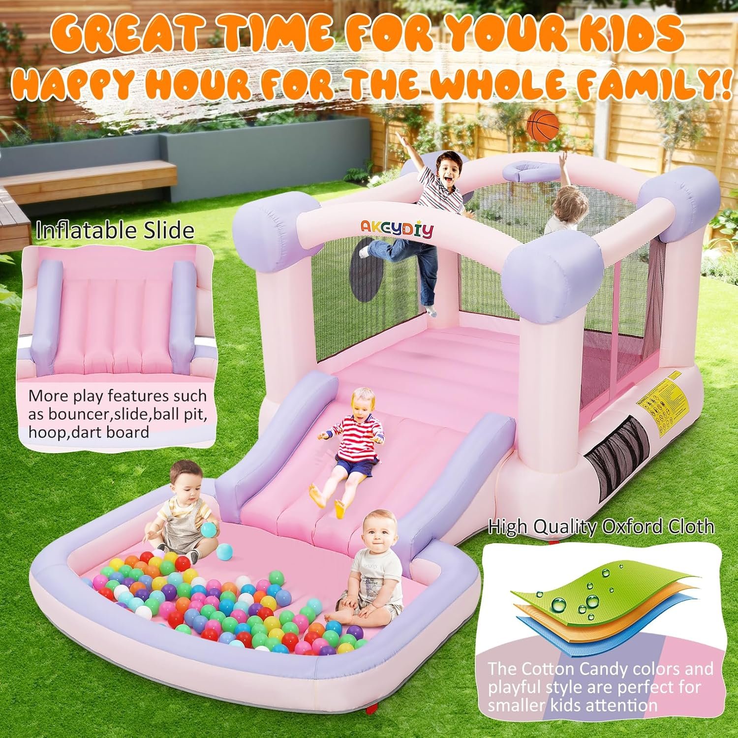 Bounce House with Ball Pit, Inflatable Bouncy House for Kids All in One Jumping Castle, Wide Slide, Pool, Basketball Hoop, Blower Included for Indoor Outdoor Backyard Party