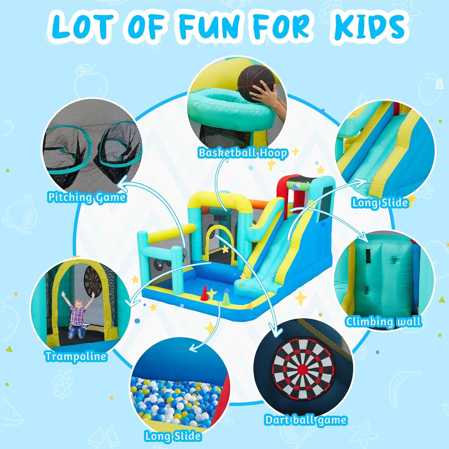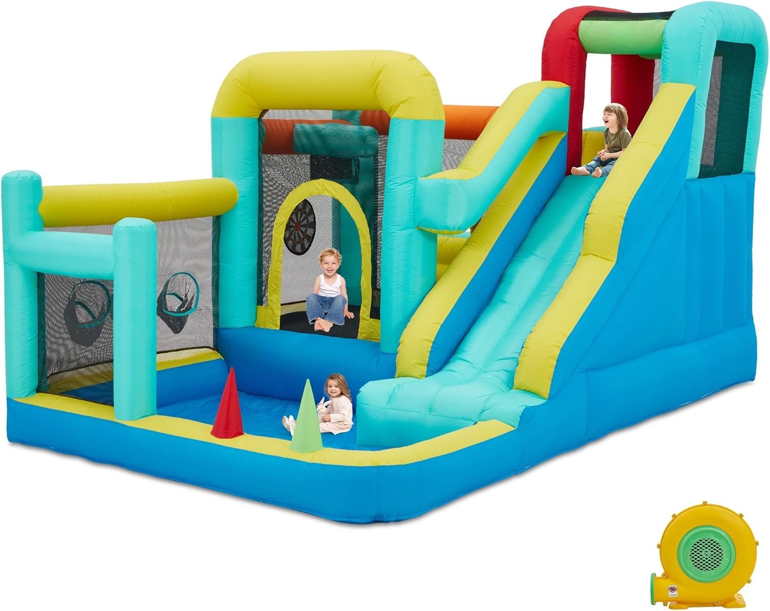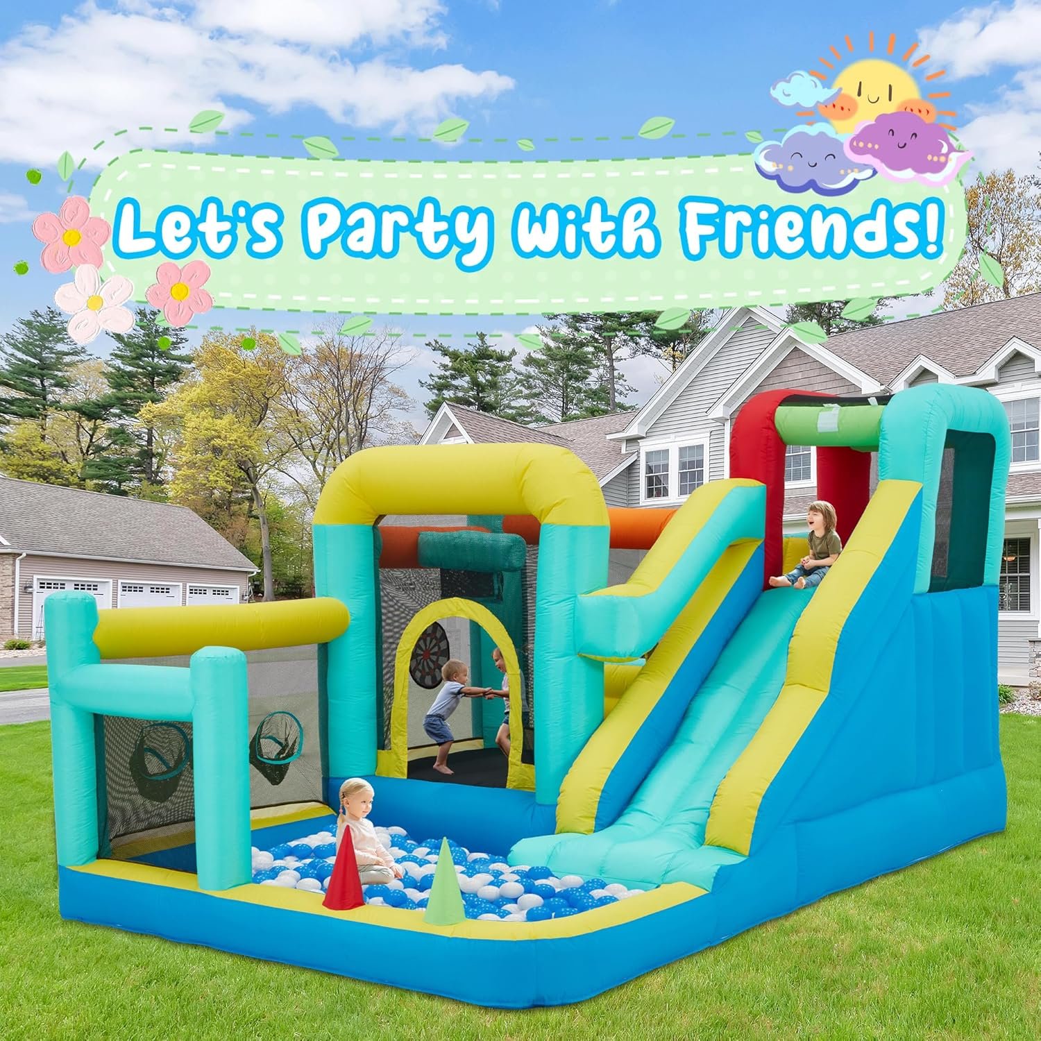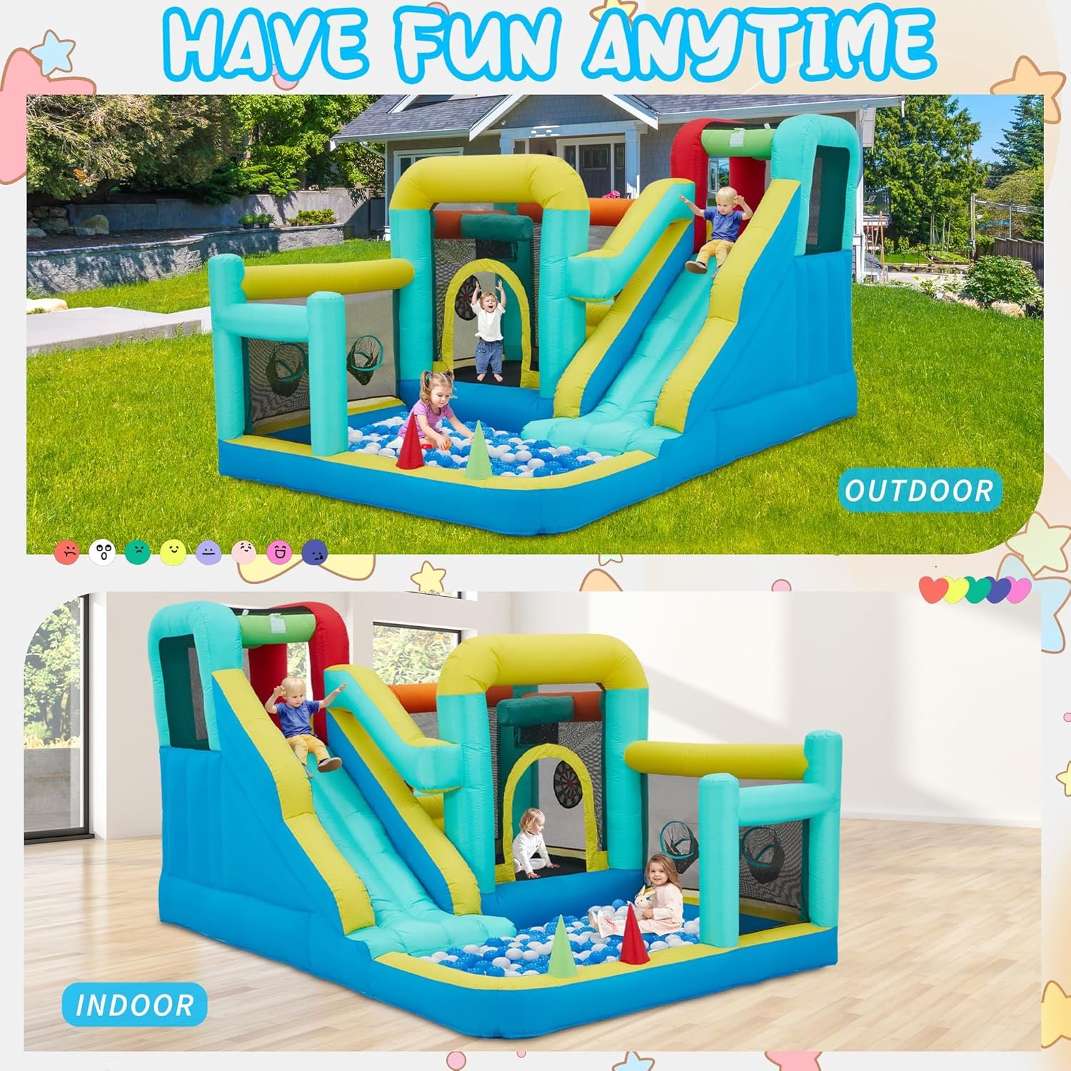 Bounce House,Inflatable Bounce Castle with Blower for Kids 3-12,Indoor & Outdoor Bouncy House with Slide,Climbing Wall,Trampoline,Ball Pit Pool,Basketball Hoop