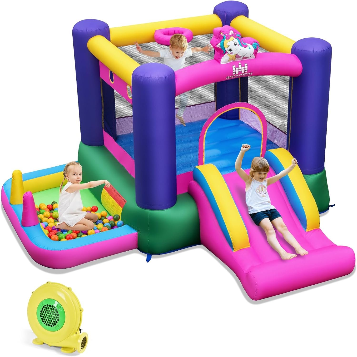 BOUNTECH Inflatable Bounce House with Ball Pit, Bouncy House for Kids Indoor Outdoor w/Large Jumping Area, Basketball Hoop, 480w Blower, Mini Bounce House for Boys Girls Backyard Birthday Party Gifts