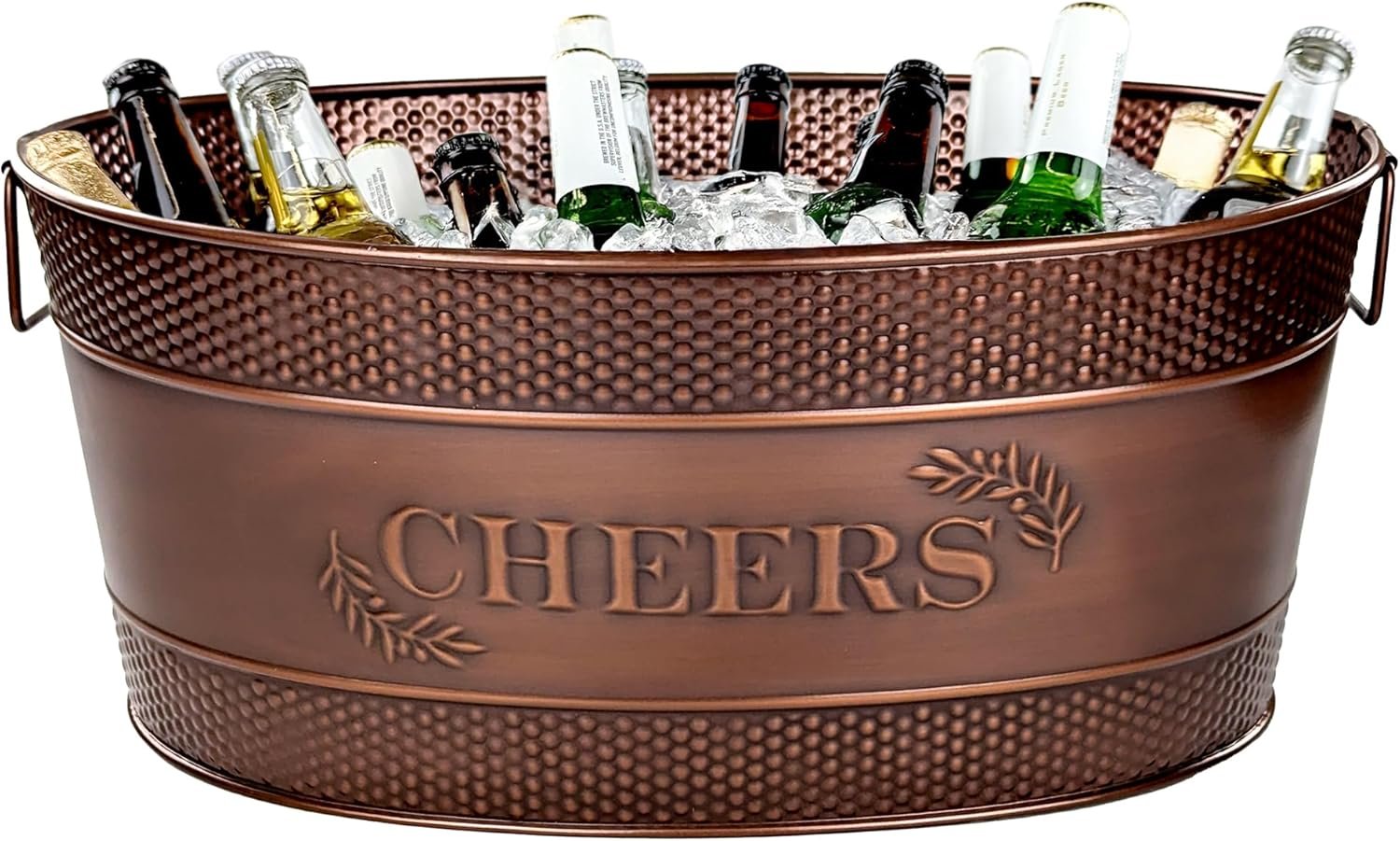 BREKX Cheers Aspen Galvanized Metal Ice and Drink Bucket, Copper Beverage Tub for Parties/Gifts, Large Champagne Tub, 25-Quart