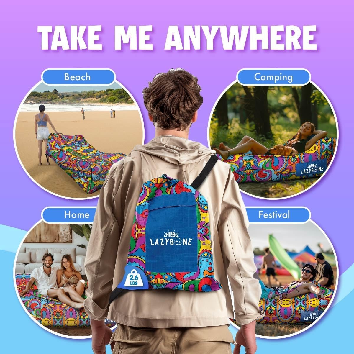 Chillbo offers innovative inflatable chairs called Lazybones, designed for comfort and fun. Featuring two stylish designs—Trippydraws and Psychedelic 60’s—they’re perfect for festivals, road trips, or backyard lounging. With quick inflation technology, setup is hassle-free. These durable chairs are lightweight, adventure-ready, and can support up to 440 lbs, making them easy to transport and perfect for various outdoor occasions. Enjoy relaxation in style wherever you go!