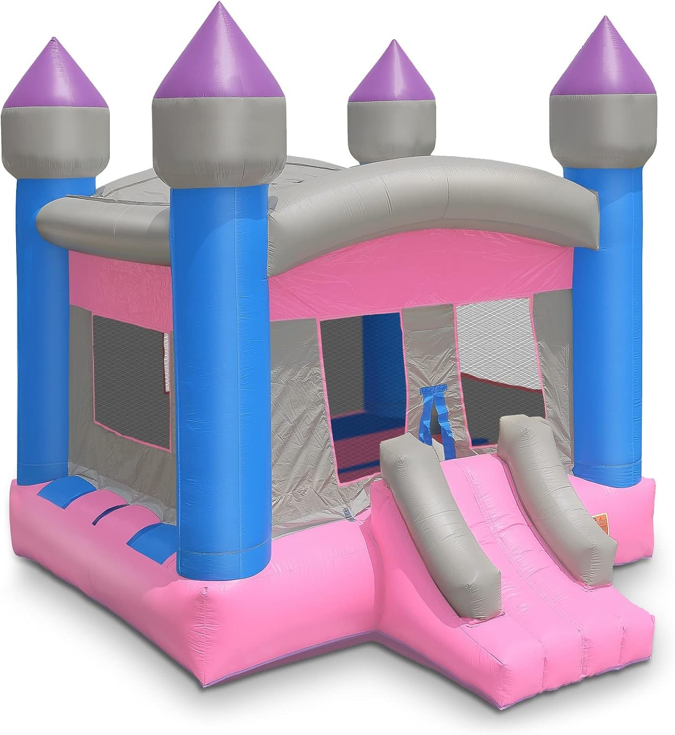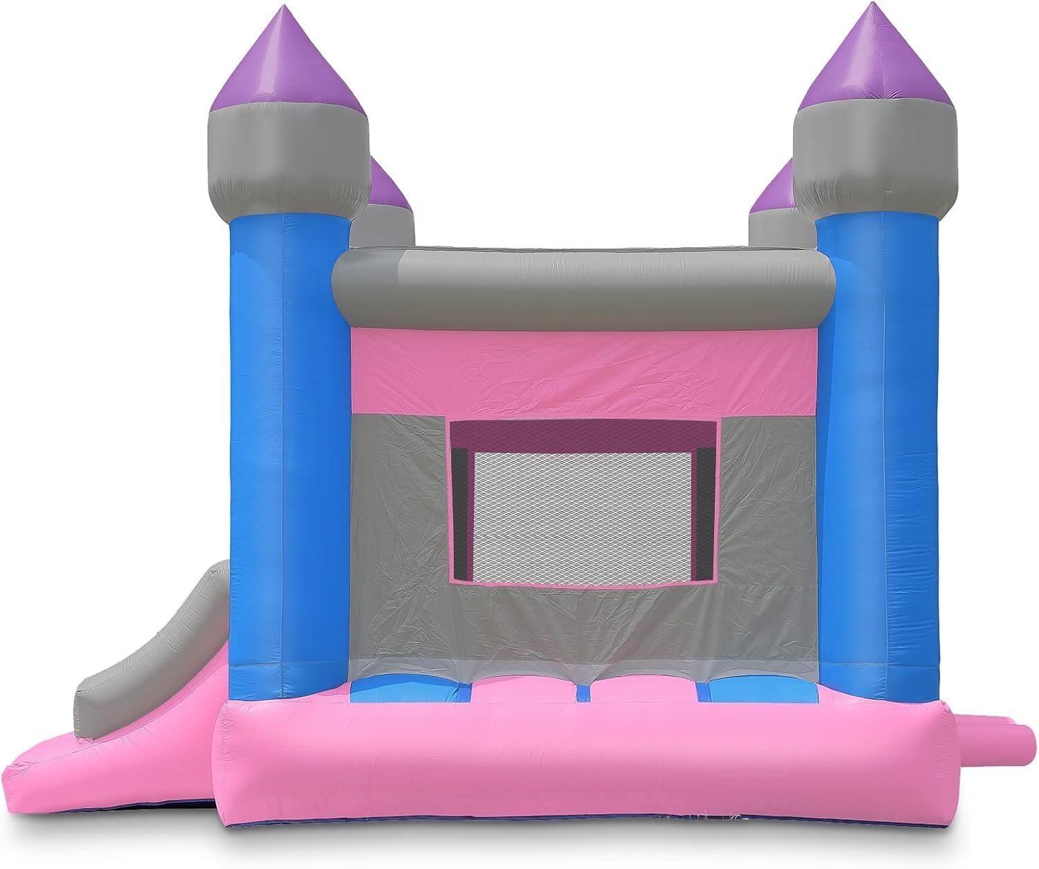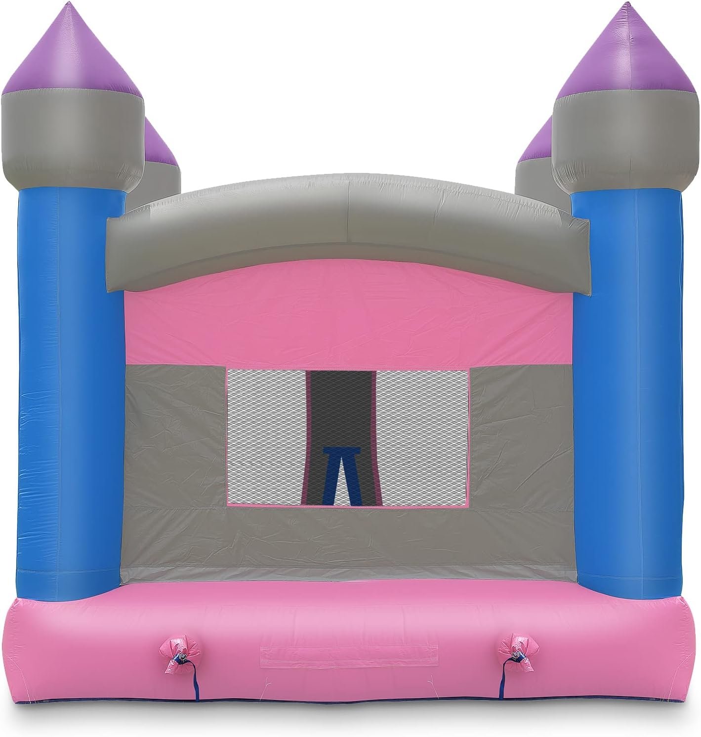 Cloud 9’s Princess Castle Bounce House is made from durable, 100% PVC vinyl, ensuring strength and safety. With a 30″ tall mattress for excellent cushioning and spring force, it also features a sunshade roof and safety escape hatch. Ideal for rental use, it accommodates around 8 children (800 lbs total).