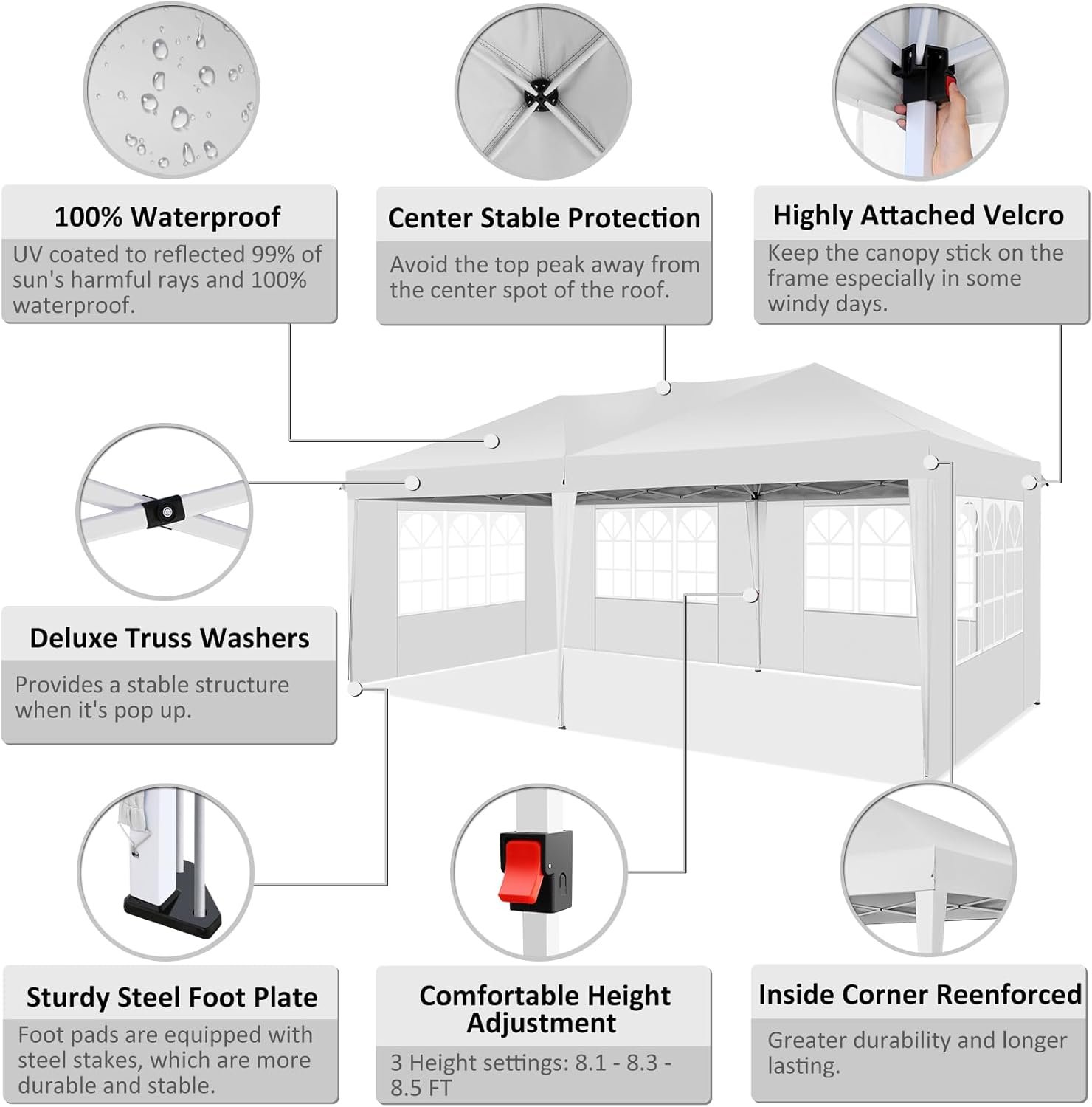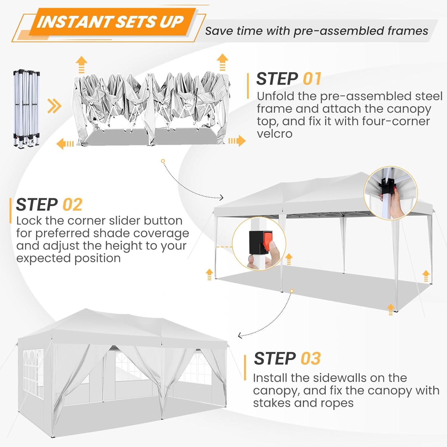 COBIZI specializes in outdoor canopies, offering a range of products including pop-up canopies and party tents in various sizes (10x10FT to 10x30FT). Their canopies are designed for durability, made from waterproof Oxford cloth, and provide excellent UV protection. The 10x20FT pop-up canopy covers 200 sq ft, suitable for events like barbecues and parties, with easy setup in just 10 minutes by two people. Each product includes multiple components for versatile use in events, festivals, and gatherings. Choose COBIZI for quality outdoor leisure products.