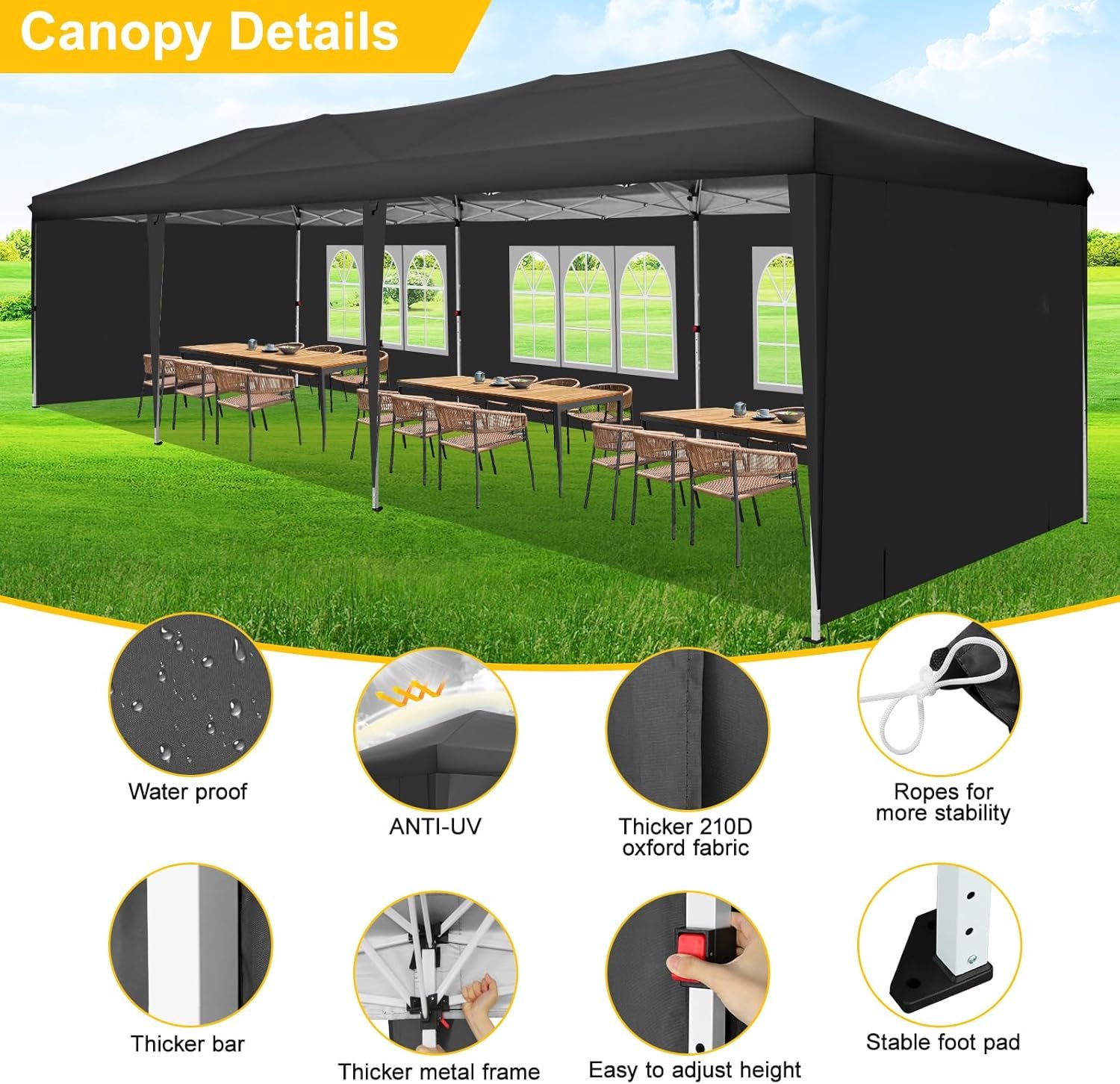COBIZI specializes in outdoor canopies, offering a range of products including pop-up and heavy-duty canopies in various sizes (10x10FT, 10x15FT, 10x20FT, 10x30FT). Their 10×30 pop-up canopy features a sturdy frame with adjustable height, removable sidewalls, and essential accessories for easy setup. Constructed from waterproof and UV-resistant materials, it provides reliable shelter for various occasions. COBIZI emphasizes quality, durability, and customer satisfaction, making them a preferred choice for outdoor events.