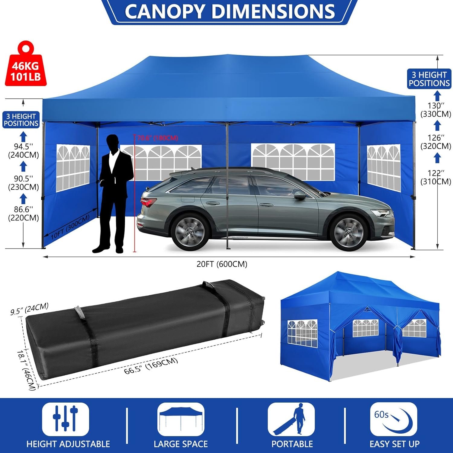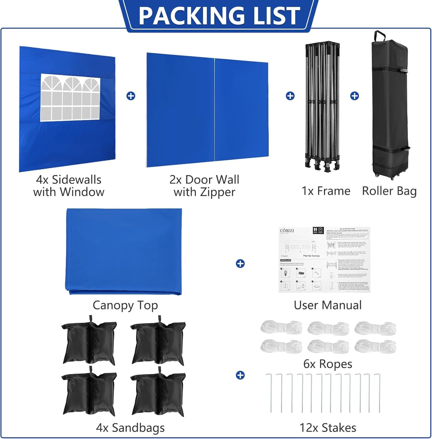 COBIZI offers a range of high-quality outdoor canopies, including sizes 10x10ft, 10x20ft, and 10x30ft, designed for durability and ease of use. Their pop-up and heavy-duty canopies feature robust frames and waterproof fabric with UV protection, suitable for various events. The canopies come with adjustable heights and are easy to set up without tools. COBIZI prioritizes customer satisfaction with professional service and affordable quality products. Each tent includes essential accessories for stability and transport in a convenient roller bag, making them ideal for outdoor gatherings, parties, and more.