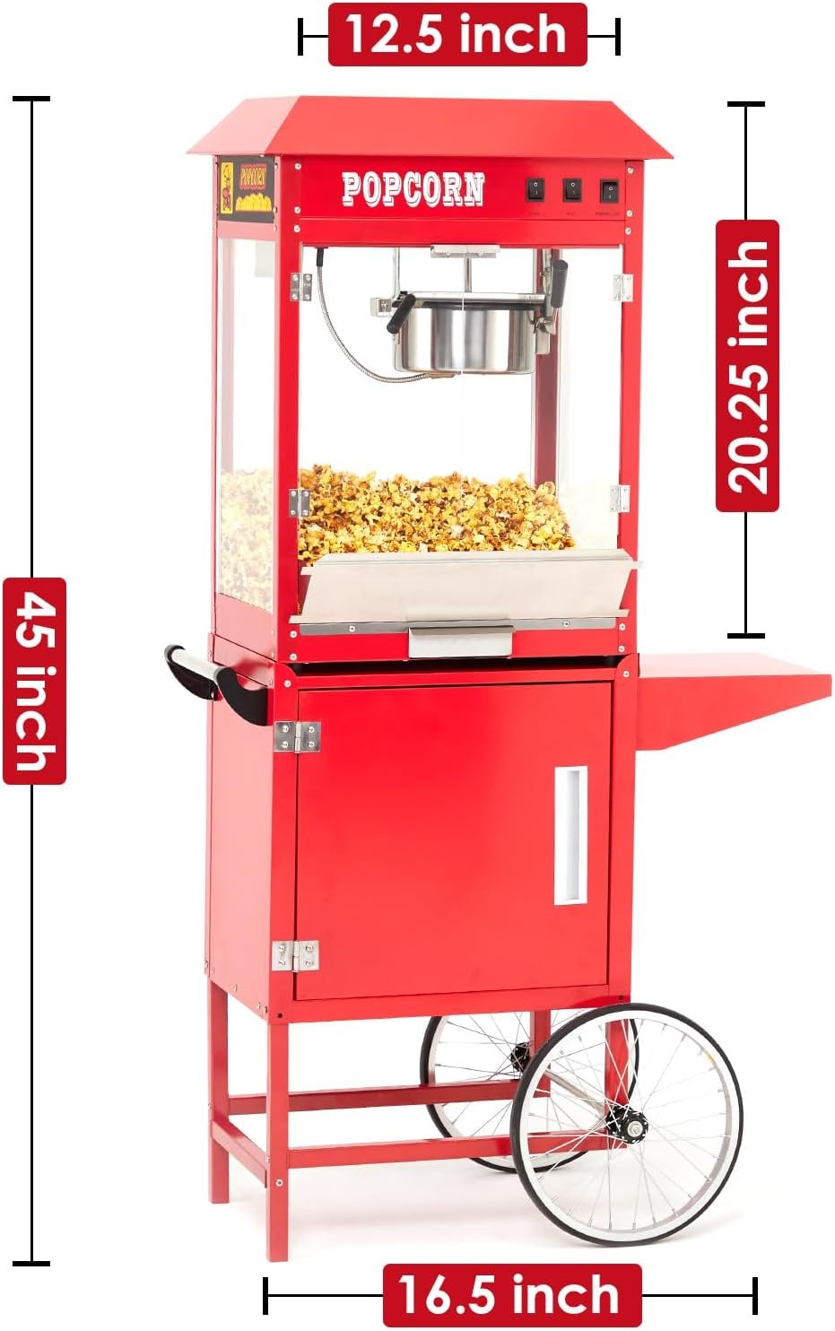 Commercial Popcorn Maker Machine, Popcorn Poppers with Cart and 10 Oz Kettle Makes Up to 64 Cups, 3-Switch Control, Theater Style