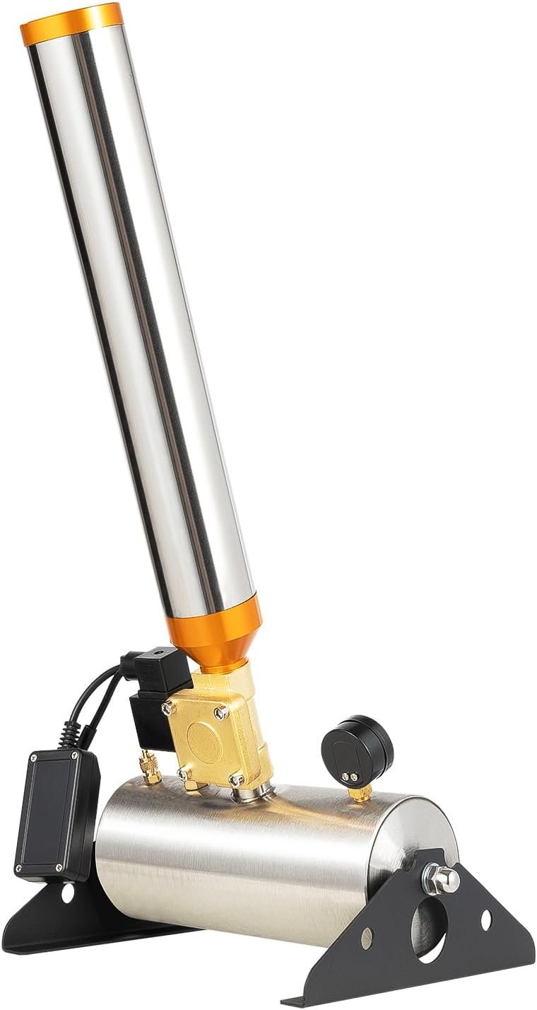 The Modern Confetti Machine features a sleek silver design made from stainless steel and iron, requiring remote control operation. It operates at AC110V with a 150W motor, reaching jet heights of 10-15m. The adjustable spray angle (45°, 60°, 90°) allows for tailored confetti displays, and it supports air pressures up to 2.5Mpa. The machine is eco-friendly and has an IP65 protection level. It includes two machines, remote controls, and power cords. Make sure to use an air compressor (not included) and follow safety instructions for optimal performance.