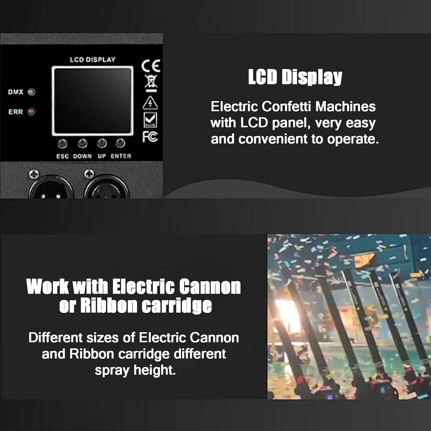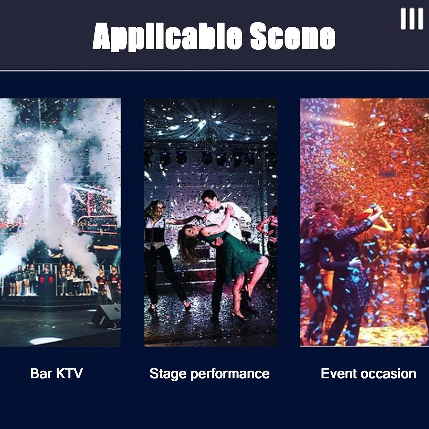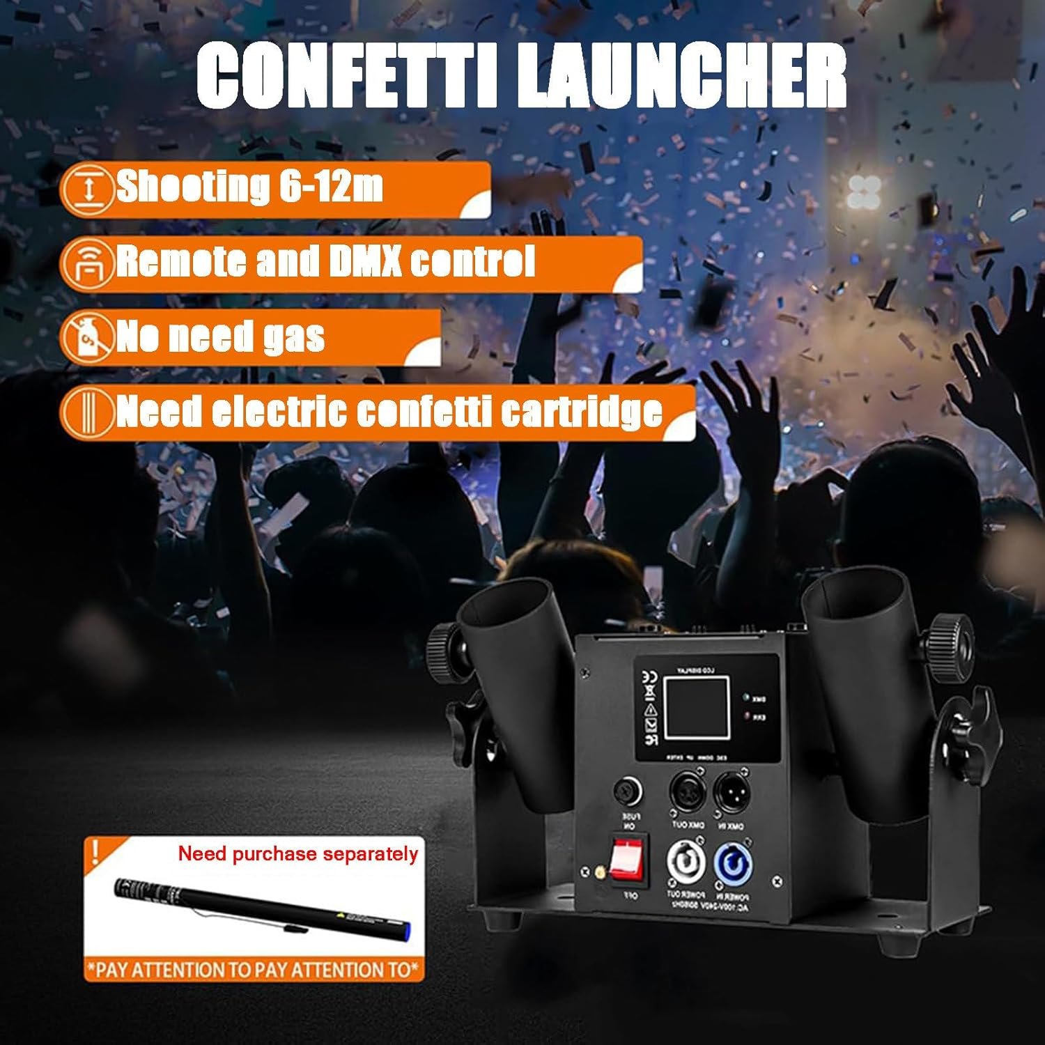 This professional confetti launcher adds excitement to various events like Halloween, weddings, and performances. It features single and dual-head machines, remote control, and DMX compatibility, with a jetting height of 8-10 meters. Each machine is easy to operate, adjustable for angle, and comes with a protective cover for durability. Weights and sizes vary, and buyers must source confetti locally due to shipping restrictions. Ideal for enhancing atmosphere at concerts, parties, and other celebrations, it ensures memorable experiences with its strong performance and versatility.