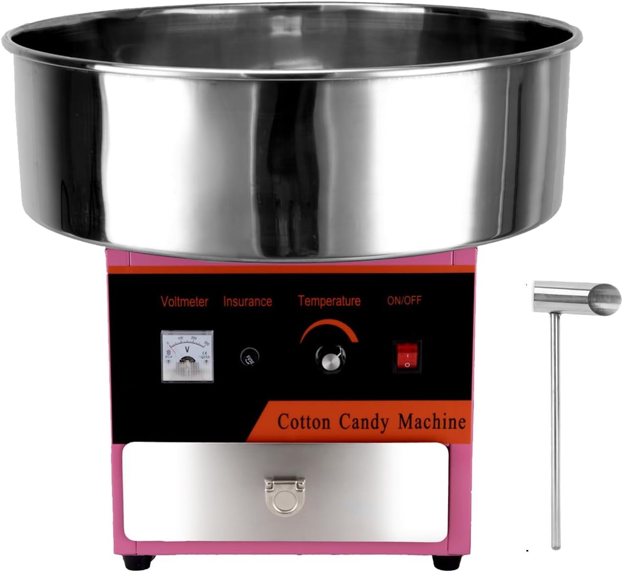 The Electric Commercial Cotton Candy Maker is a powerful 1000W machine that produces fluffy cotton candy in minutes, warming up in 5-6 minutes. It features a large, easy-to-clean 20″ stainless steel bowl, cooling vents, and stable nonslip feet. Complete with accessories like a sugar scoop and storage drawer, it’s user-friendly: just power on, preheat, add sugar, and collect. Its vibrant pink design makes it perfect for parties, carnivals, and as a gift, enhancing any celebration with delicious cotton candy. Ideal for both commercial use and home events.