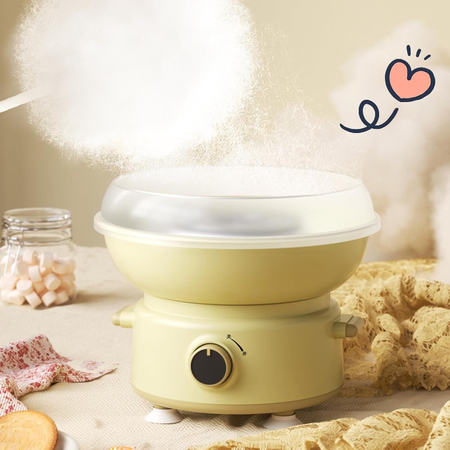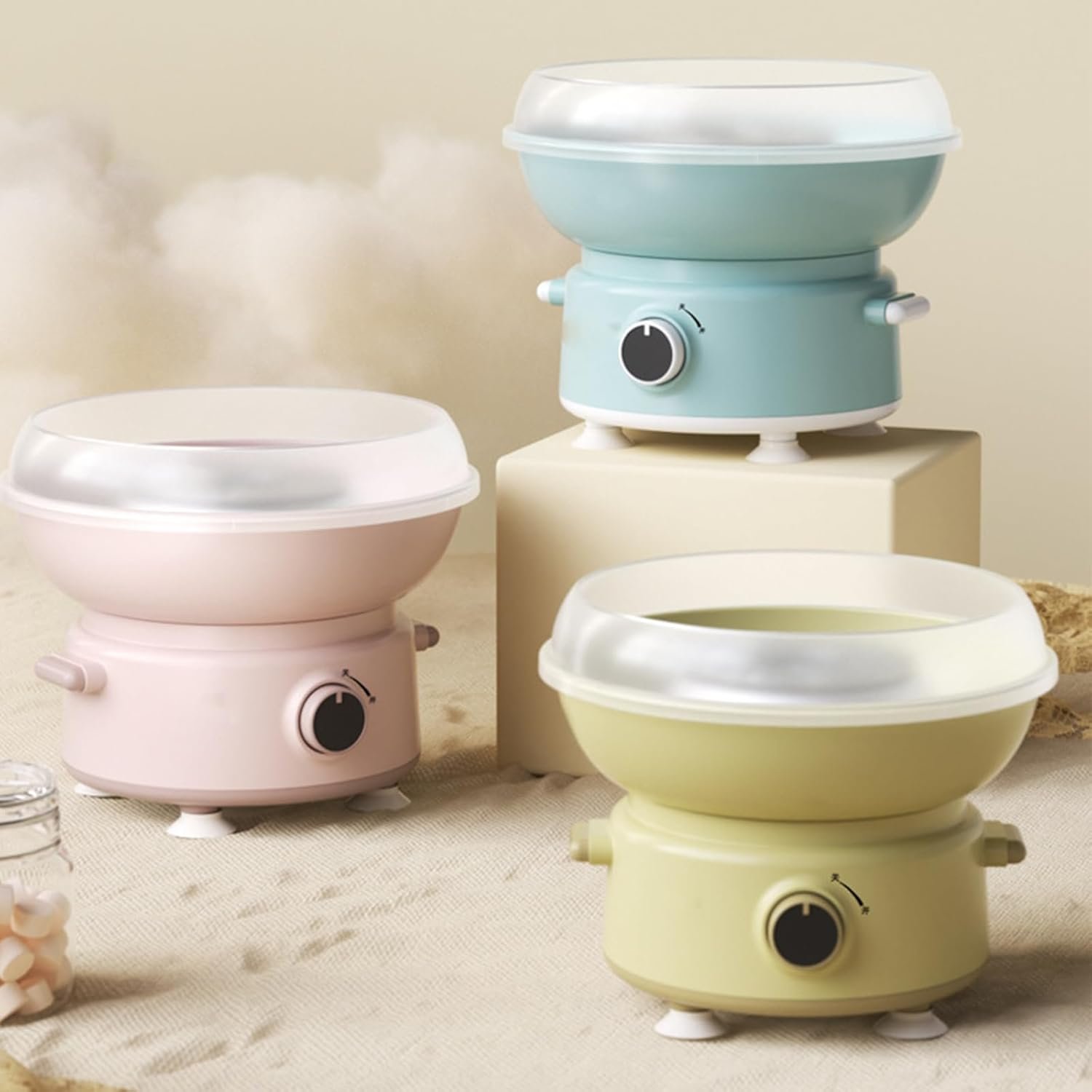 The marshmallow machine is a food-grade, safe device designed for easy use and cleaning. With a split design and a simple on/off switch, it allows for quick marshmallow production in just minutes. Lightweight and portable, it’s ideal for parties and events. The machine operates at 400W and measures 26x26x21 cm. Available in pink, blue, and yellow, it works with both rock and white sugar. The package includes only the machine. Customer support is available for any inquiries within 24 hours. Note: slight size and color variations may occur due to manual measurement and lighting differences.
