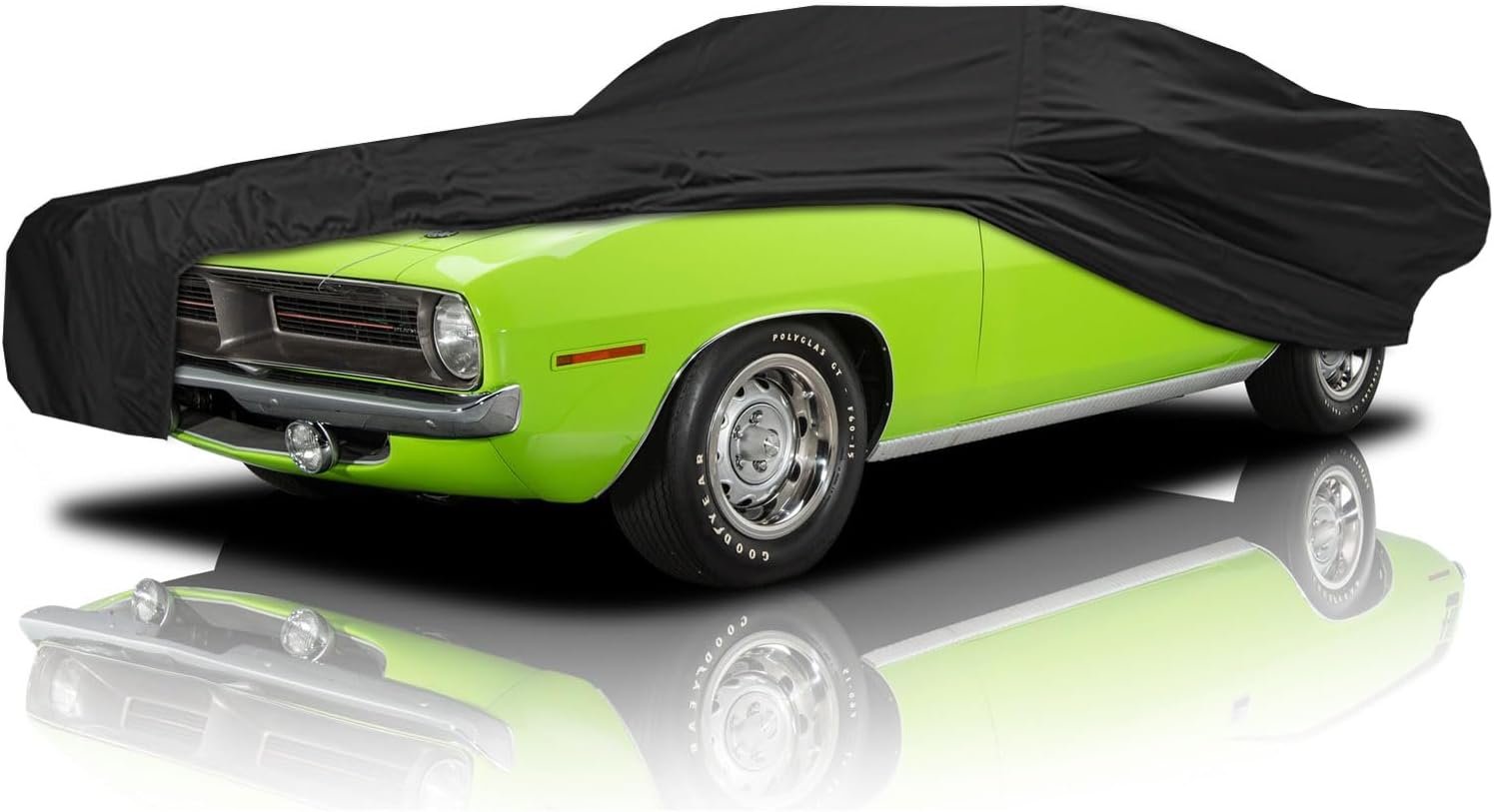 DaShield SoftTec Indoor Satin Car Cover for Plymouth Barracuda 1970-1974 Hardtop/Coupe EMI Custom Fit Elastic Stretchy Flexible High-end Luxury Dust Protection-Black