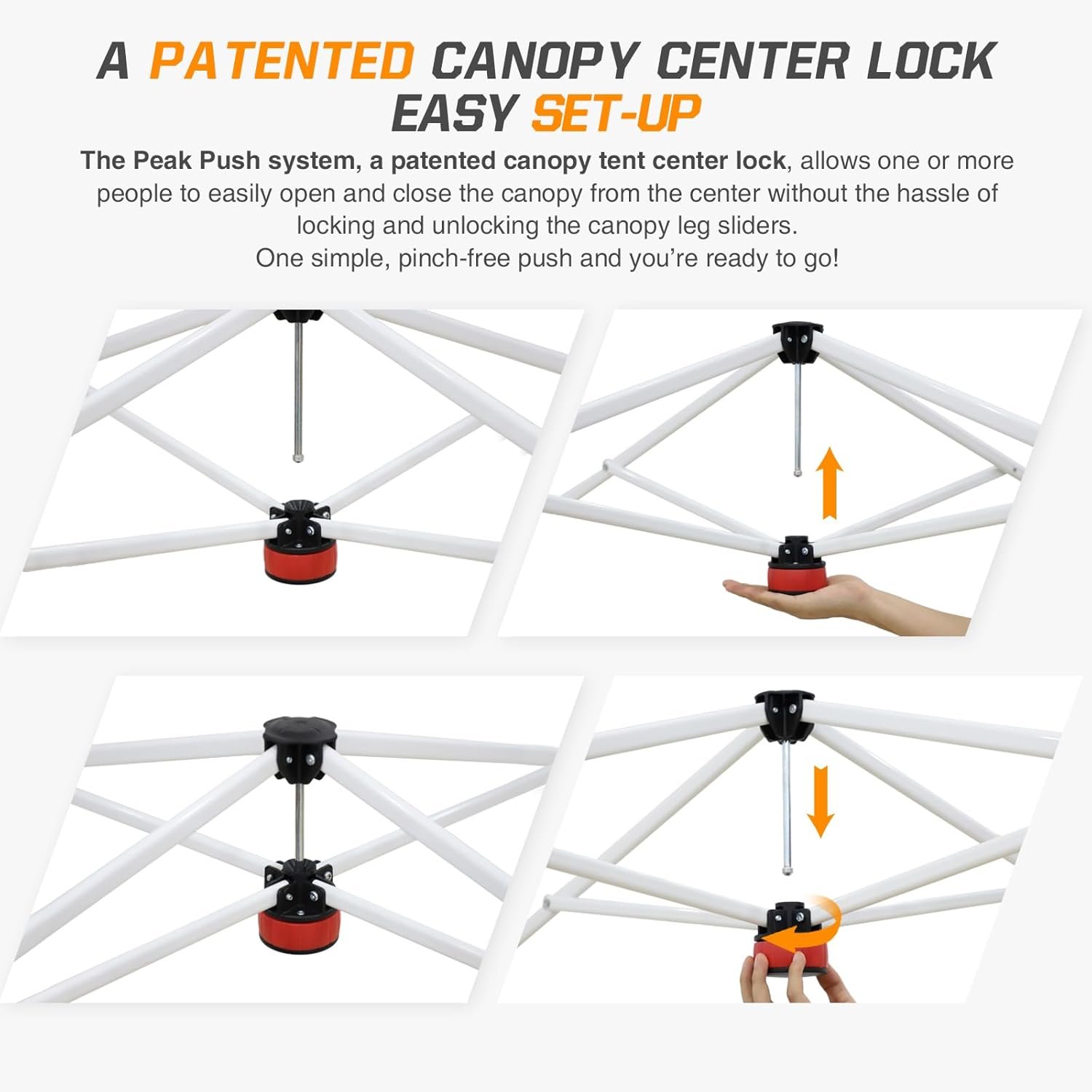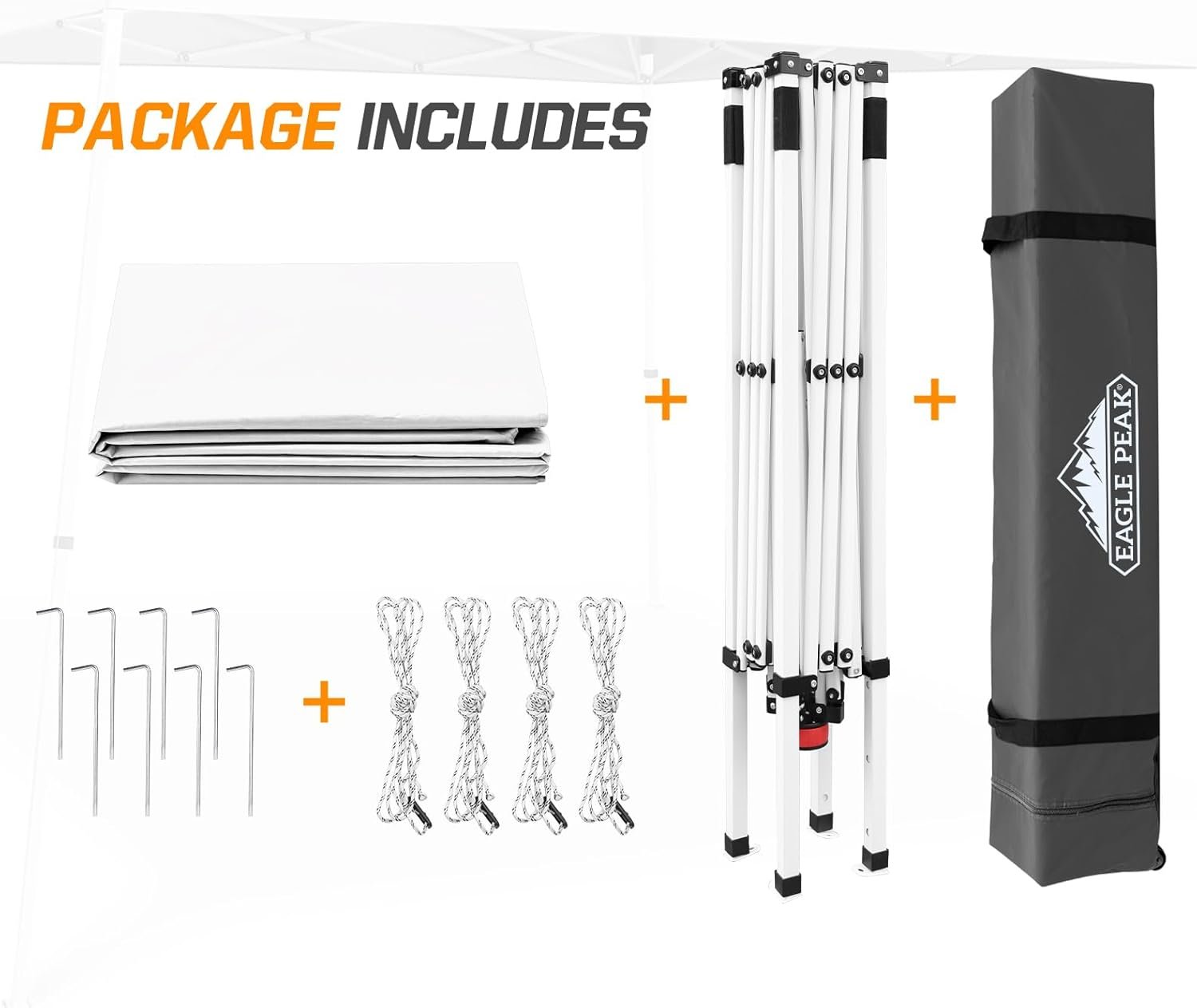 EAGLE PEAK, a US-based brand, specializes in outdoor products like pop-up canopies and gazebos, known for their Peak Push technology enabling easy single-person setup. Their canopies feature adjustable height, superior UPF 50+ UV protection, and durable materials. Compact and portable, they come with a wheeled carrying bag for easy transport. EAGLE PEAK emphasizes quality, customization, and customer feedback to enhance their products, ensuring reliable support and a 1-year limited warranty on purchases. Perfect for any outdoor occasion, their canopies provide ample shade while simplifying setup.